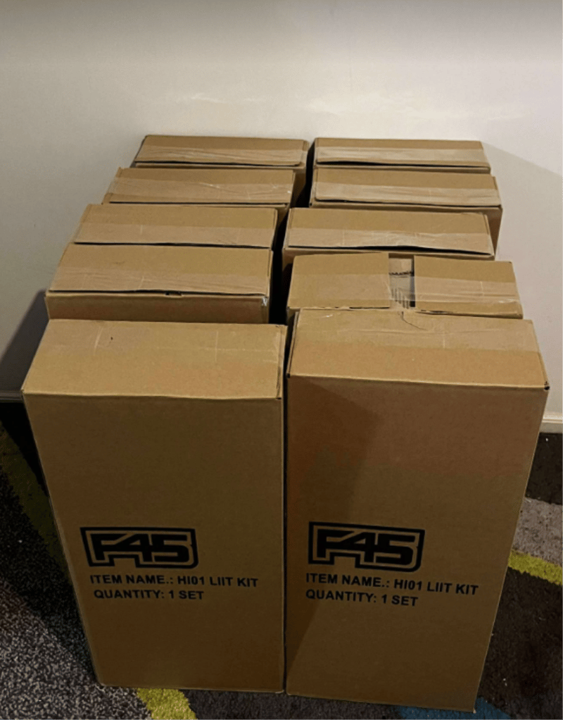 10 sets in box – F45 LIIT Kits. (Each set contains – F45 bag, Agility lader, speed rope, agility, agility cone x 5, sliding discs.) Refer to images,