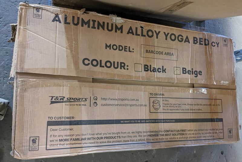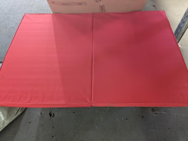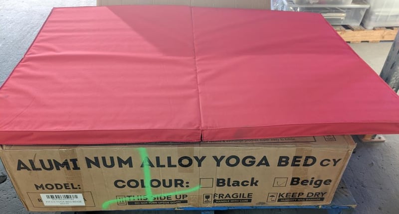 Assorted items includes, aluminum yoga bed and gym mat. NOTE: May have missing pieces and signs of wear and tear. Sold as a lot.