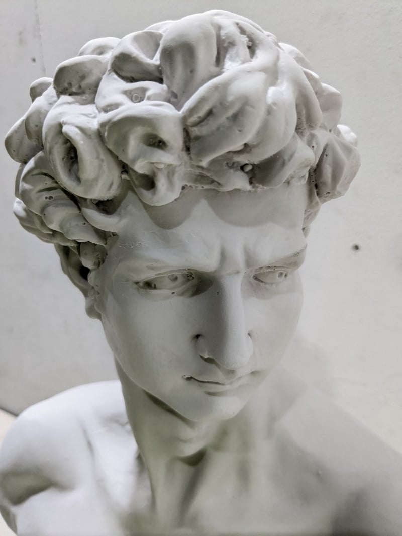 Replica of the head and shoulders of the bust sculpture of Michelangelo's David.