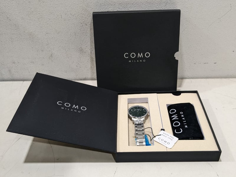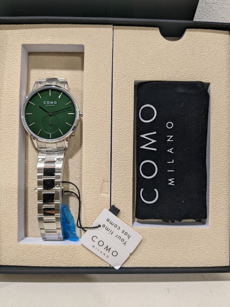 Como Milano Legend Today men's watch with a green dial and a silver stainless steel band.