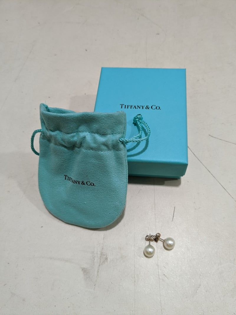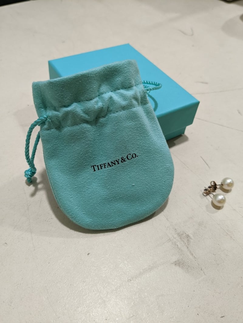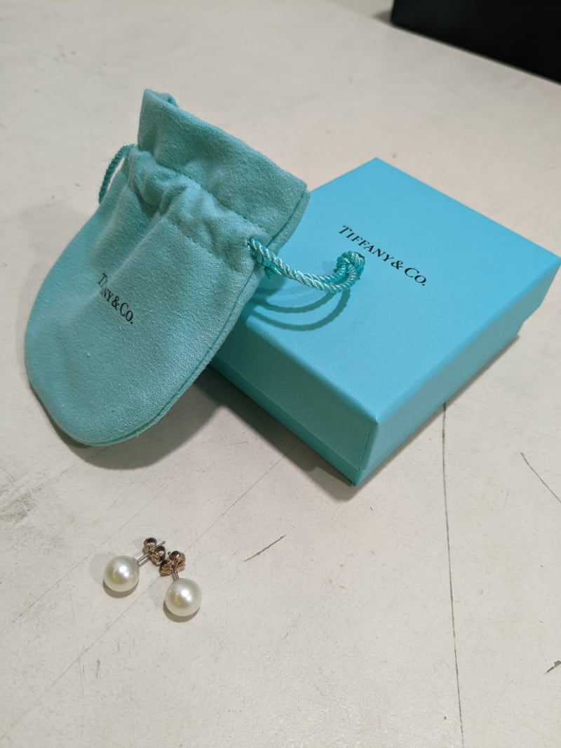 Silver Toned Pearl, Stud Earrings with Storage bag
