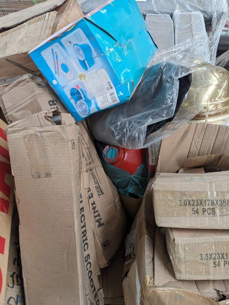 Assorted items includes, sofa covers, spin mop and more..