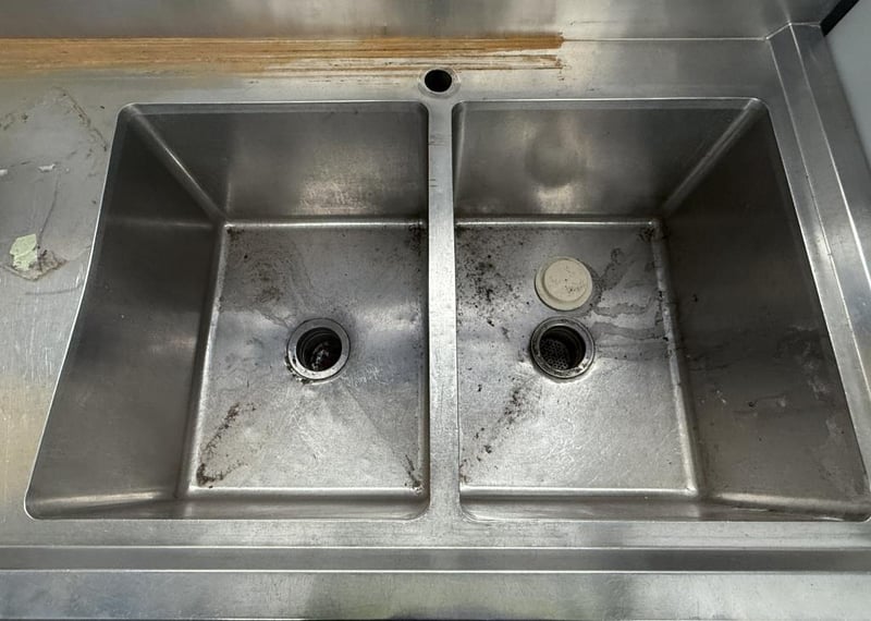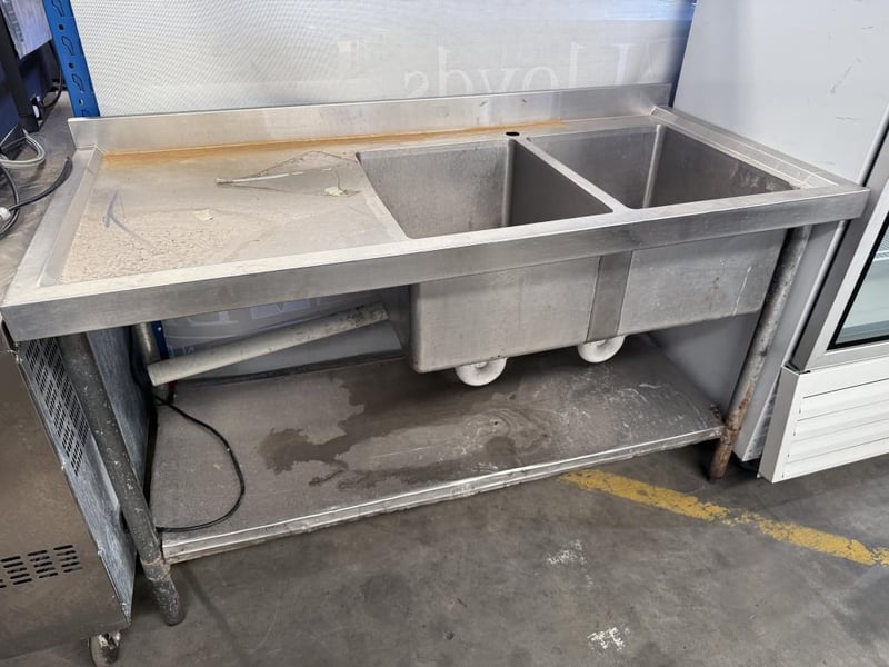 Stainless Steel Double Right Sink Bench Note: Signs Of Wear And Tear 70cm(D) × 90cm(H) x 180cm(W)