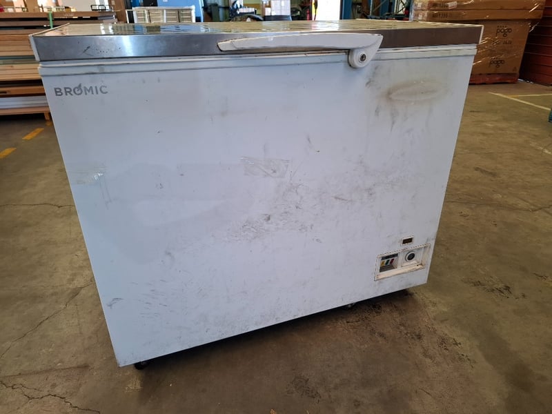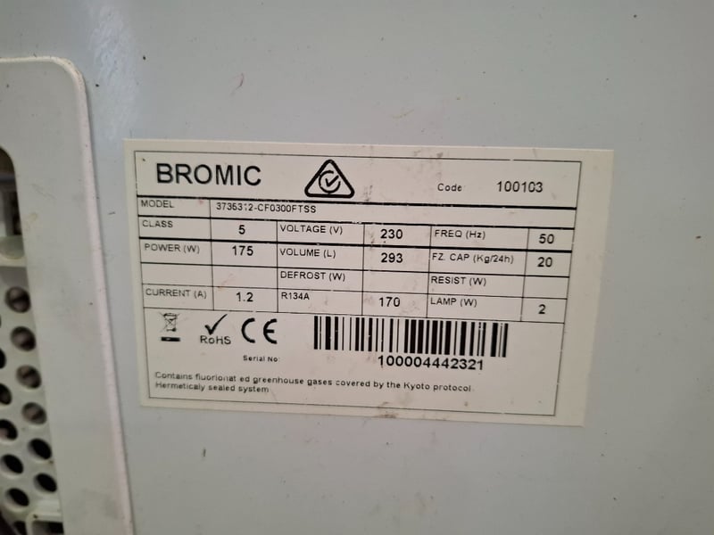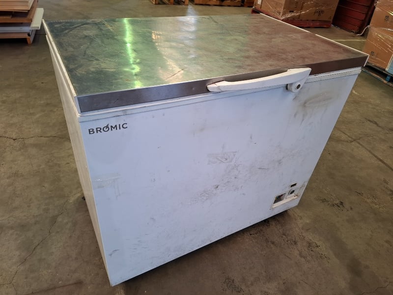 Chest freezerMake: BromicModel: CF0300FTSSSerial: 100004442321Dimensions: 101cm(W) x 72cm(D) x 89cm(H)Description/ Extras: freezer, 1 door, 1 phase, 10 Amp, white, scratches and dents , cleaning required, Inspection recommended