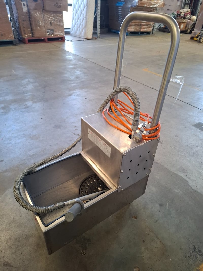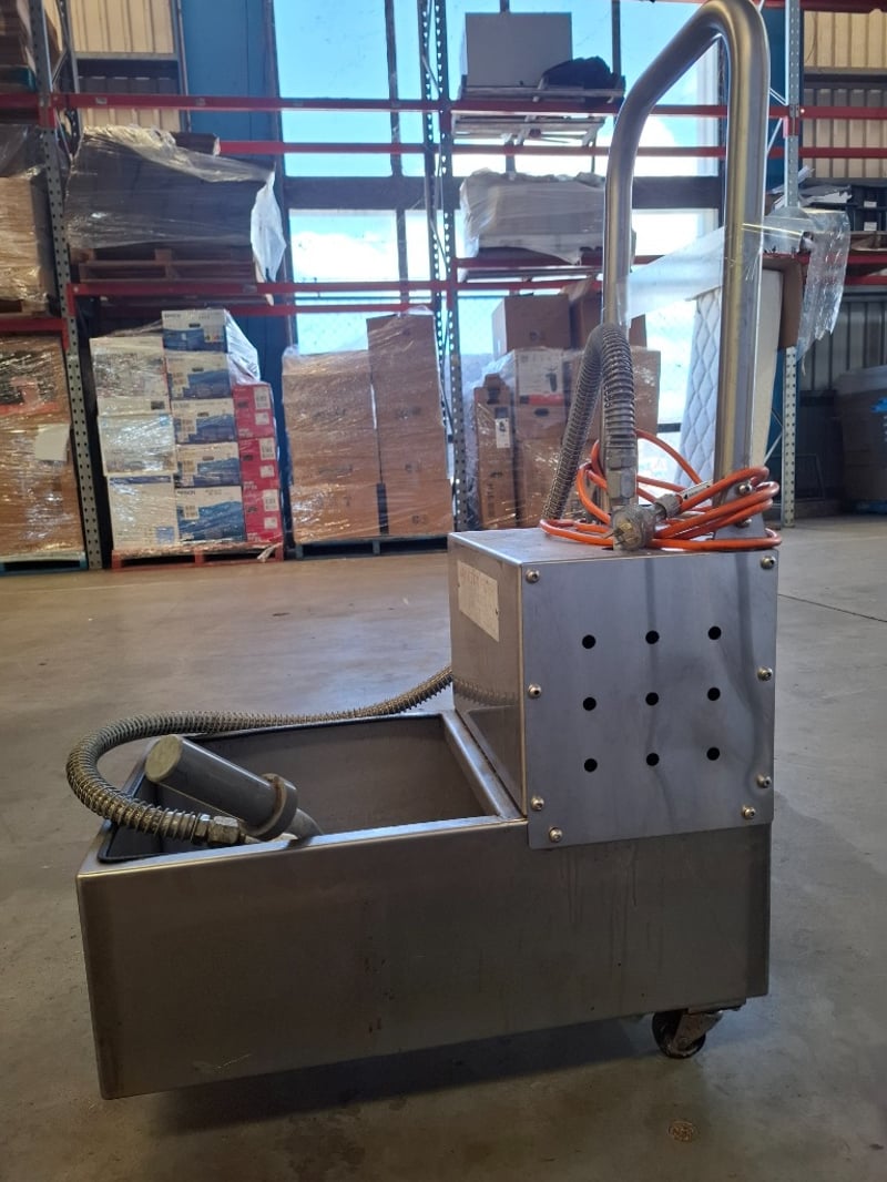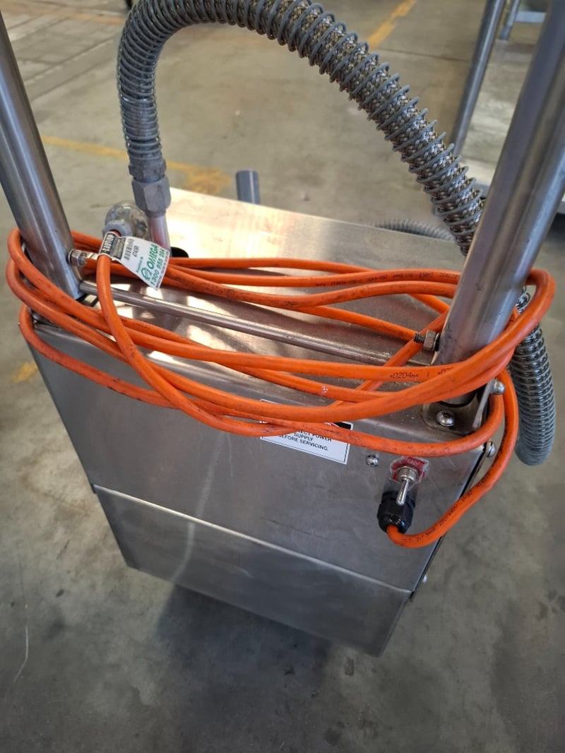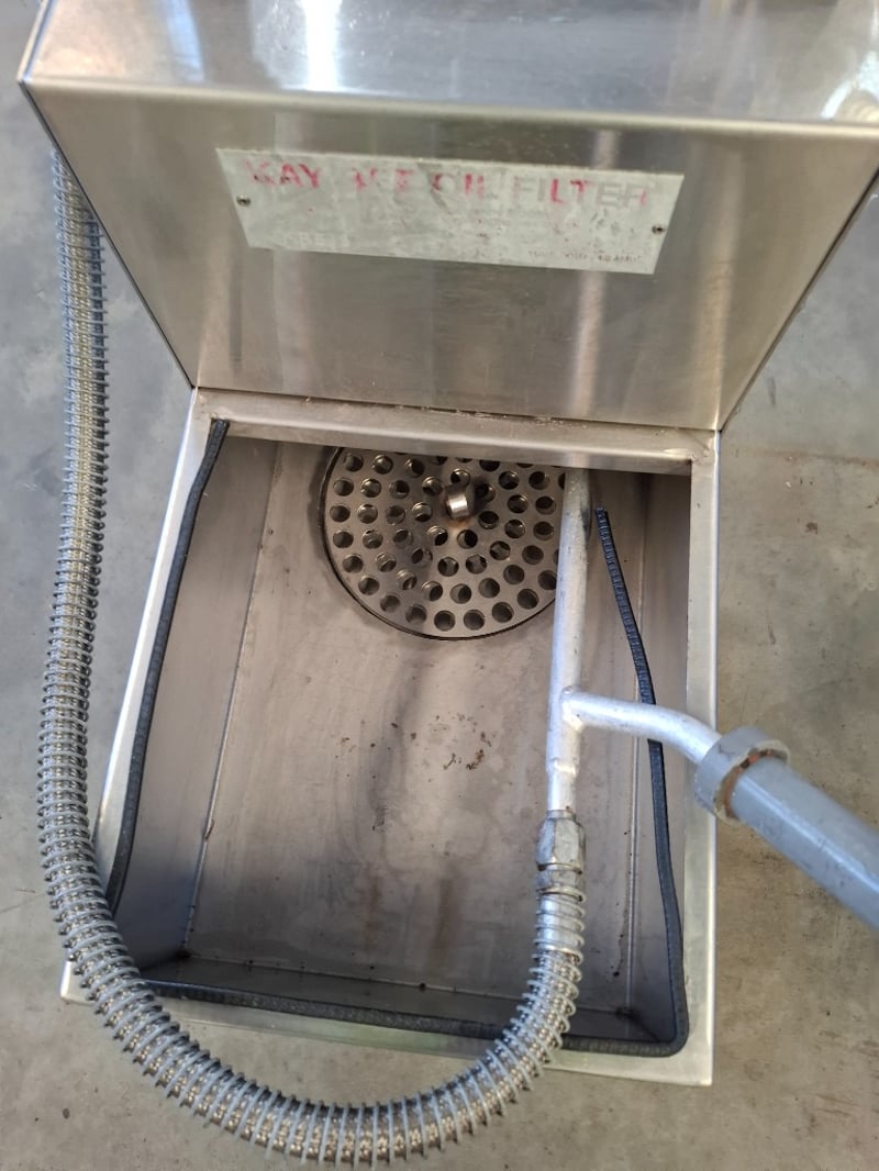 Stainless Steel Oil filter with castor wheels, 1 Phase, 10 Amp.Dimensions: 35cm(W) x 69cm(D) x 100cm(H)Note: Scratches