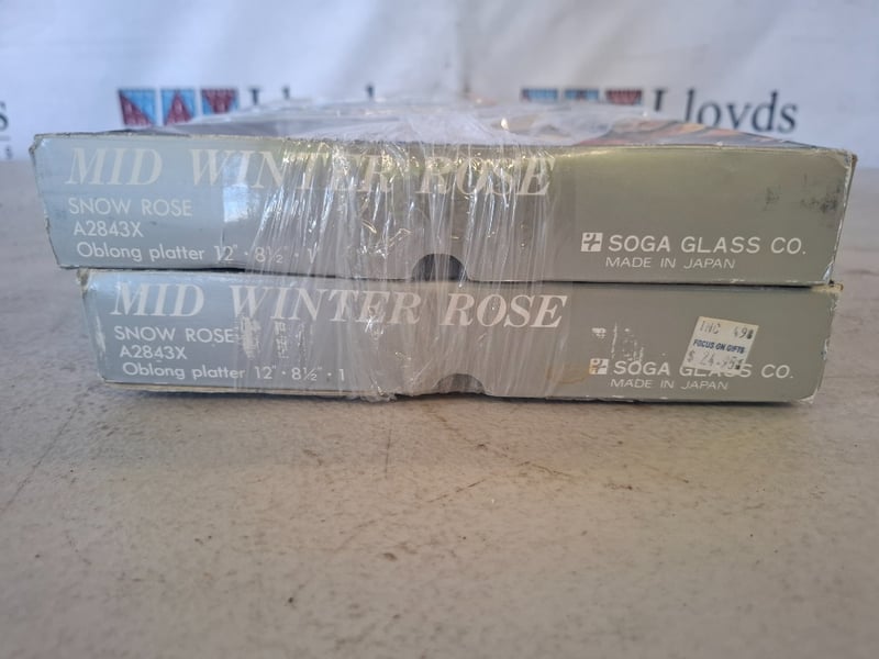 2 x Glass 'Winter Rose' serving platesSold as Lot