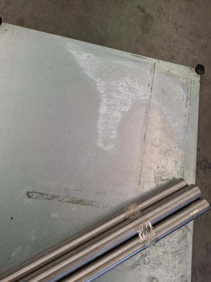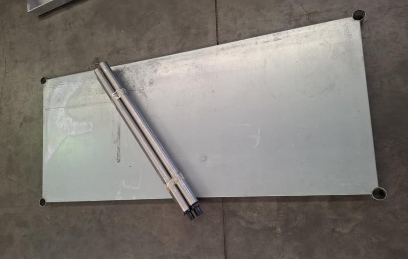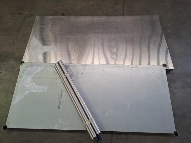 Stainless Steel bench with Mid shelf. Has scratches and dents. Disassembled.Dimensions W x 180 D x 90 H x 90 cm