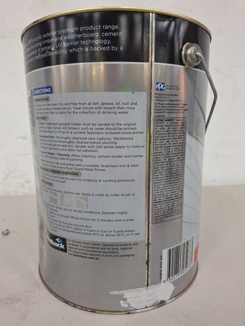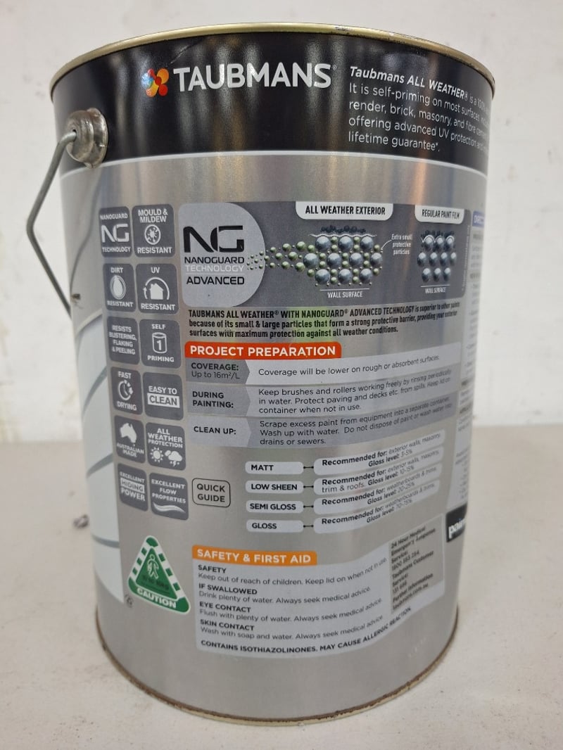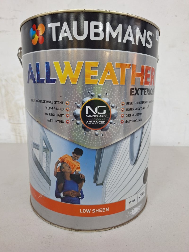 Paint, Taubmans All Weather, Low Sheen White 10LBID PER LITRE, MUST TAKE 10 LITRES