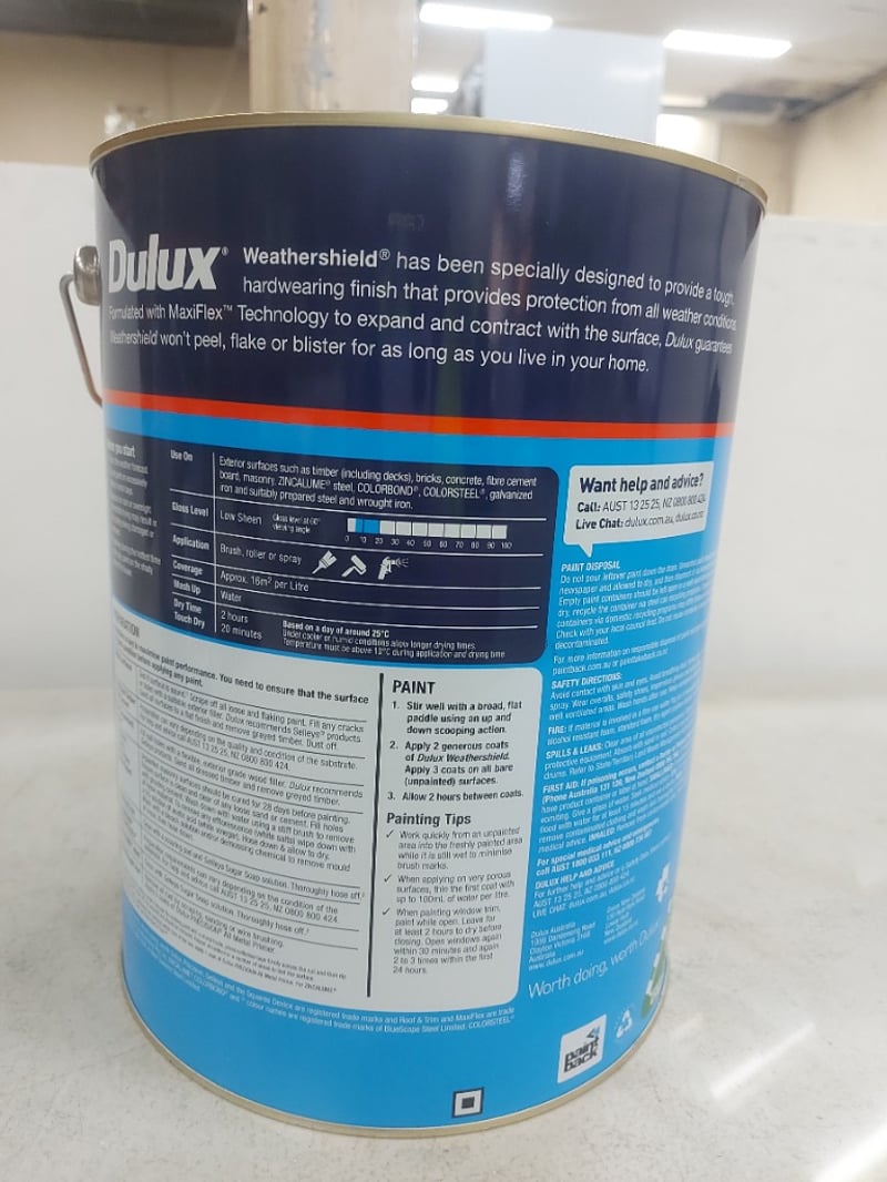 Paint, Dulux, WEATHERSHIELD, deep, Low Sheen, 10LBID PER LITRE, MUST TAKE 10 LITRES
