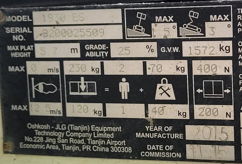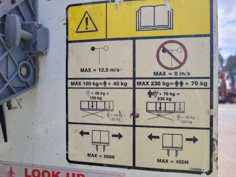 Description / Extras: Starts and operates, expendable man cage to 2.7m operator/safety manual, emergency stops, ground control, battery isolator.