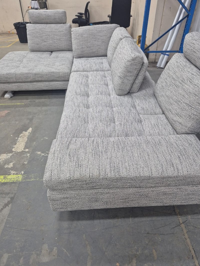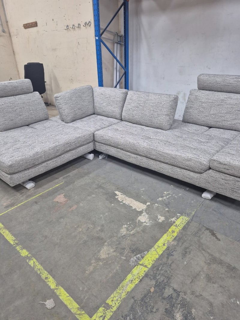 Adjustable corner couch. Light grey colour. 3 piece 4 seater Dimensions: W 3m x H 1.05m x D 2.2m