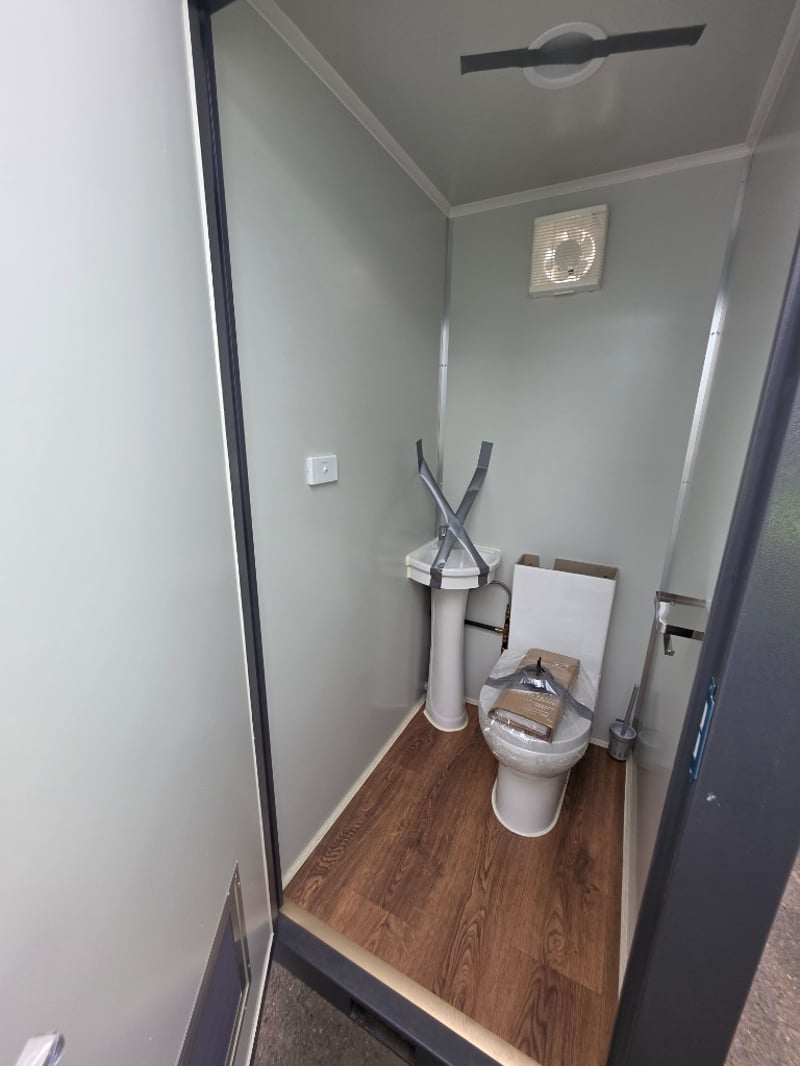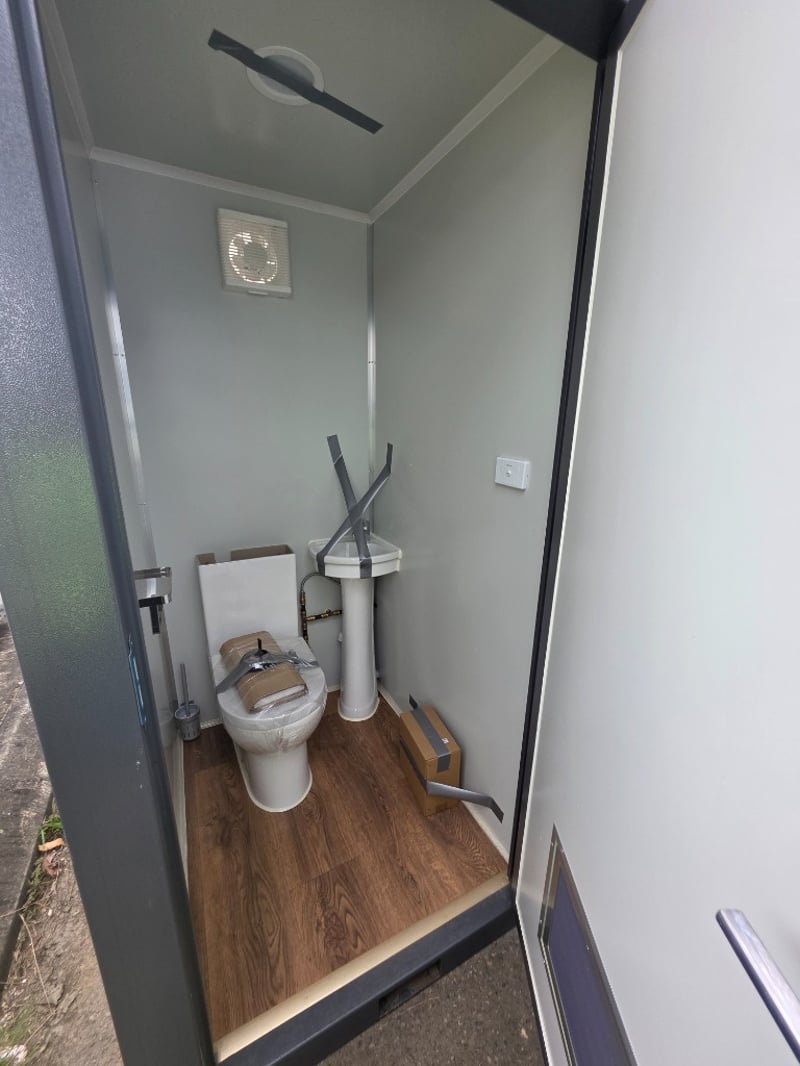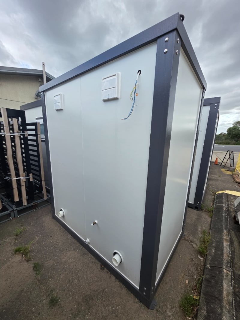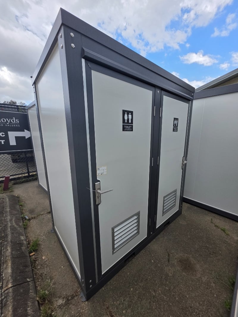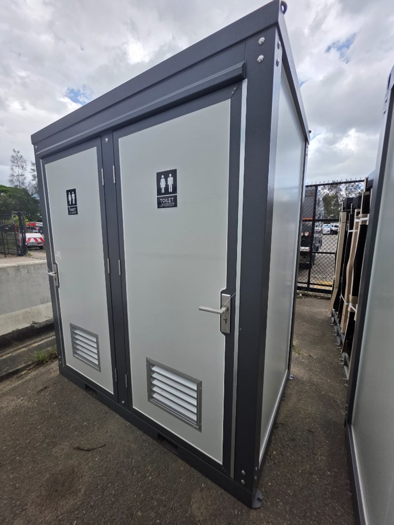 Double Toilet Block FEATURES: - Toilets - Sinks - Extractor Fans/ Vents - Plungers - Lights - Locks and Keys Dimensions: 2160mm Long, 1300mm Wide, 2360mm High Location: Acacia Ridge, QLD NOTE: Branch will be closed for the Christmas period from Thursday 25th of December to Monday 5th of January