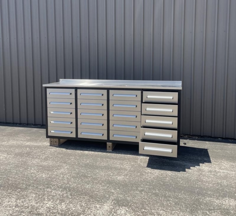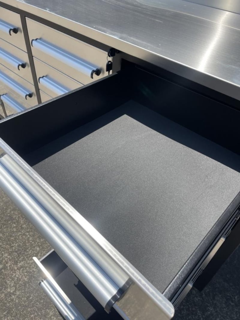 20 Drawer 7FT Workbench FEATURES: - Heavy Duty and Full extension - Non – Slip Pre-Cut Drawer Liners - Secure with Lock and Keys Dimensions: 2230mm Long, 1140mm High, 650mm High Location: Acacia Ridge, QLD NOTE: Branch will be closed for the Christmas period from Thursday 25th of December to Monday 5th of January