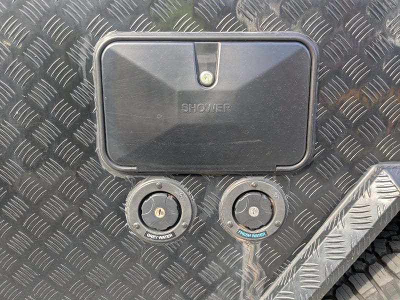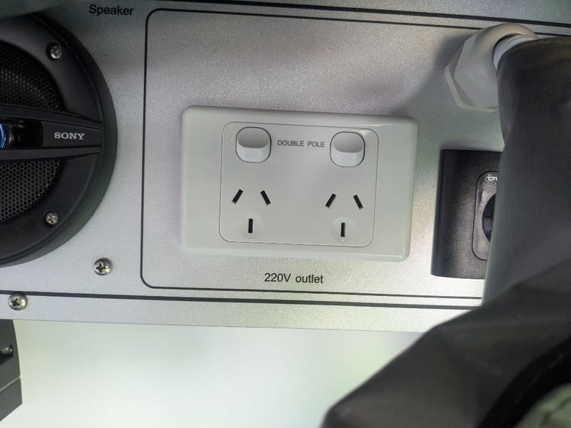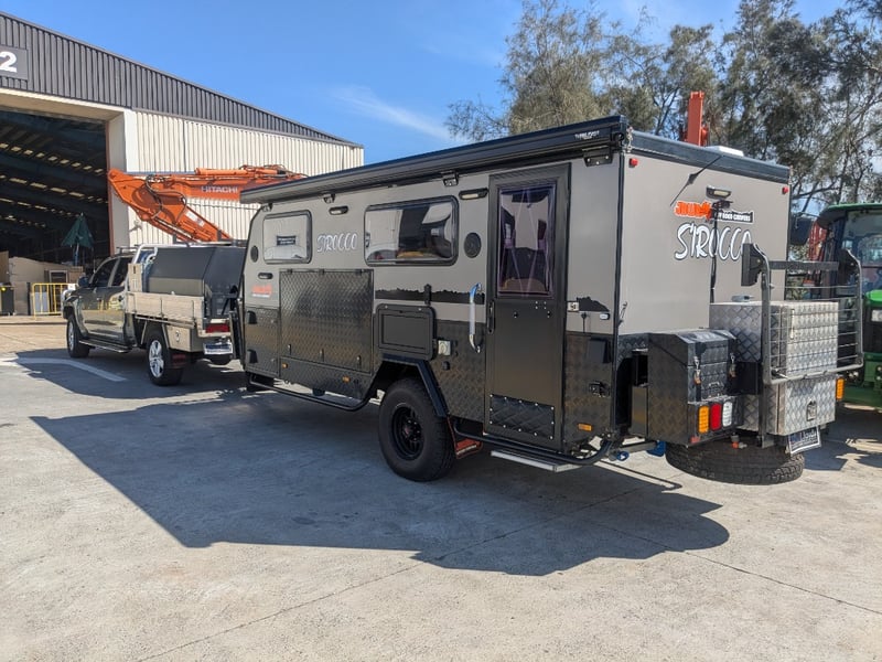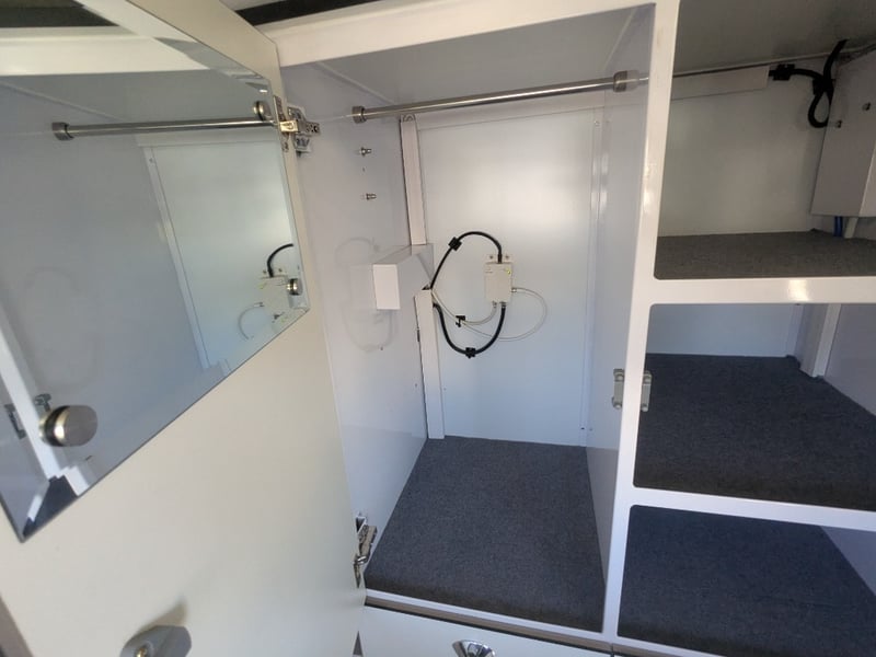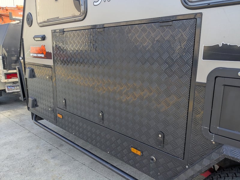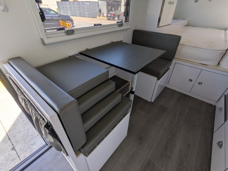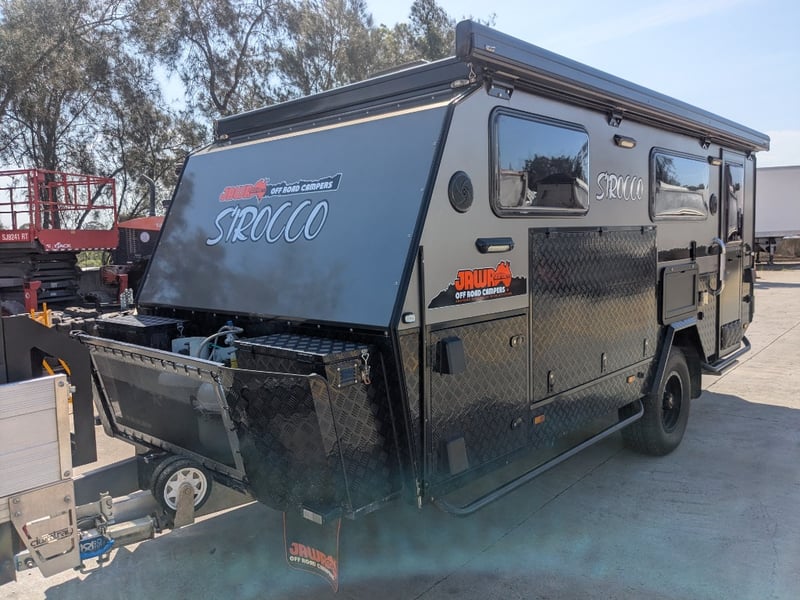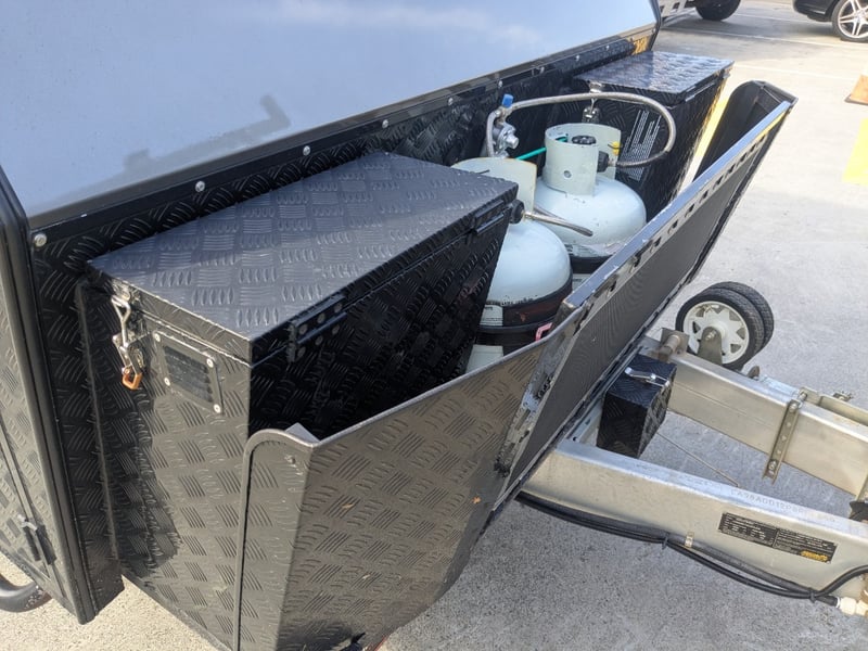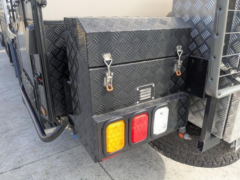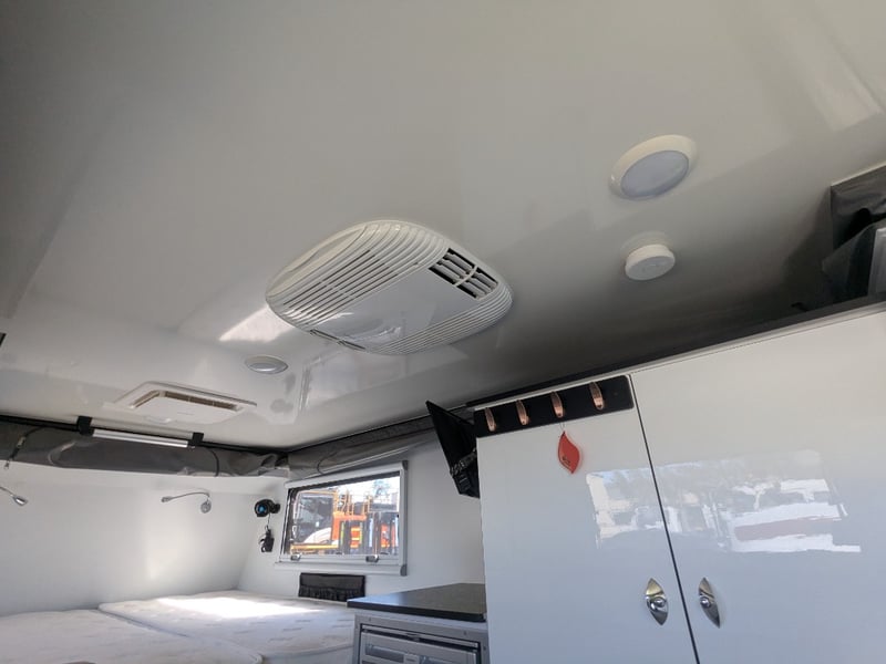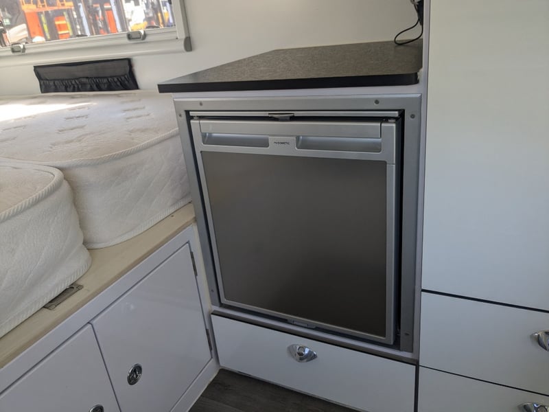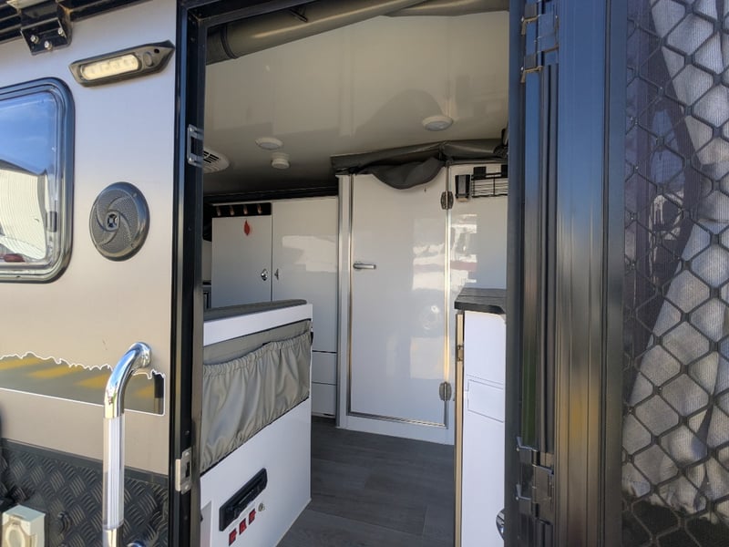 Description/ extras: Water Heater, Shower, Toilet, Sink, Tv, Speakers - In/Out, Fan, Fire Extinguisher, Under bed storage, Full Length Awning, Clothes Line, Exterior lights, Full power control, AirCon, Stereo (Radio or Bluetooth), Dual Gas bottles, Solar Panels, Expandable roof height, Power Points