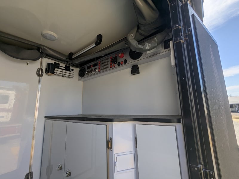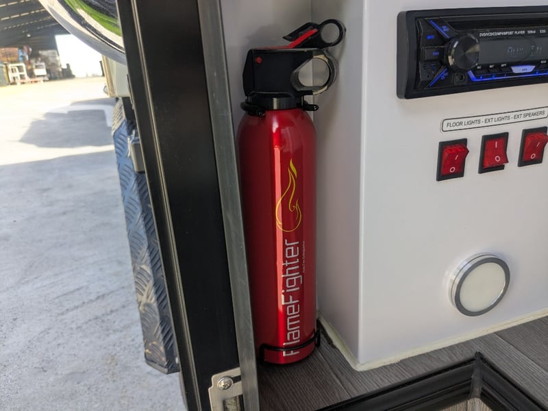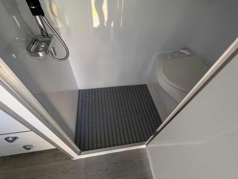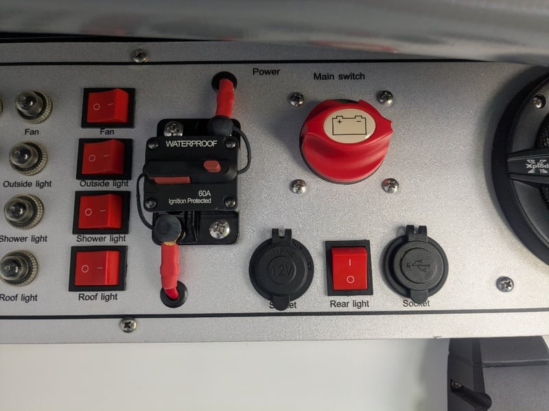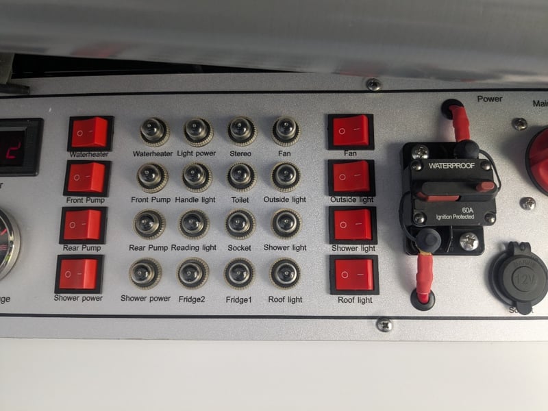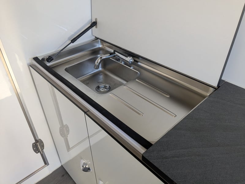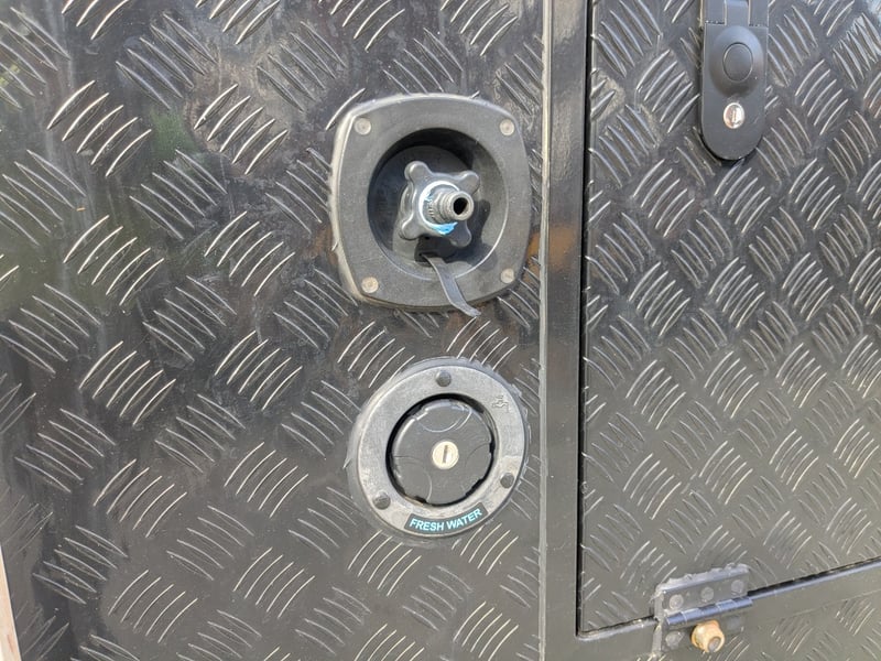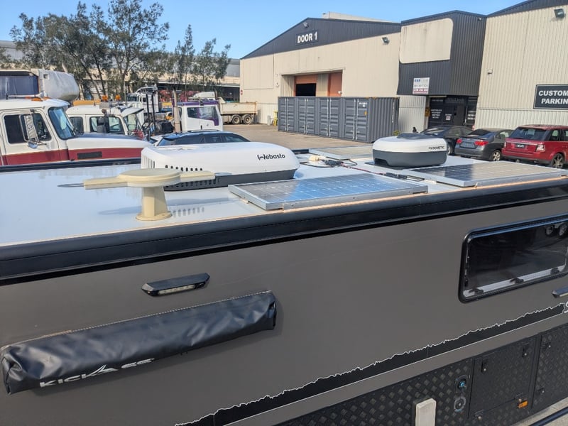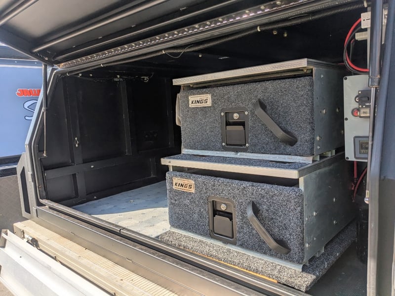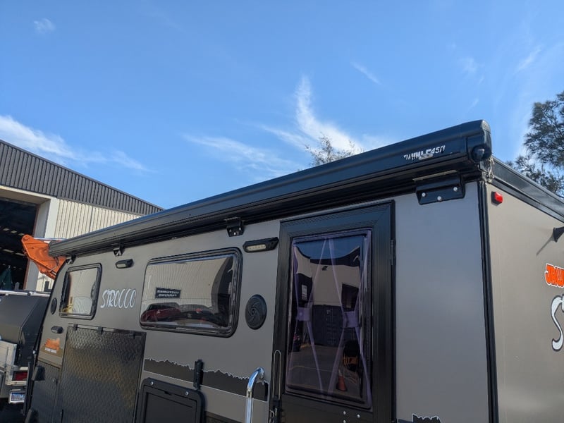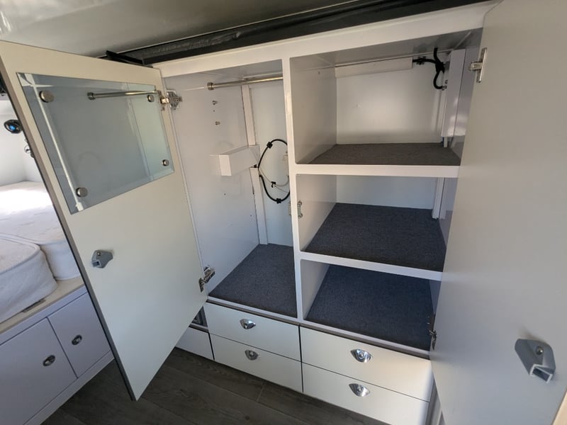 Description/ extras: Water Heater, Shower, Toilet, Sink, Tv, Speakers - In/Out, Fan, Fire Extinguisher, Under bed storage, Full Length Awning, Clothes Line, Exterior lights, Full power control, AirCon, Stereo (Radio or Bluetooth), Dual Gas bottles, Solar Panels, Expandable roof height, Power Points
