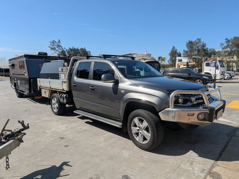 Description: AirCon, Power Windows, Multiple reverse cameras - One on the back of the caravan + One on the back of the Ute, Dual Climate Control, Parking Sensors, Radio, Bluetooth, Electric Mirrors, USB/AUX, Manual Seat Adjustability, Floor Mats, Rear Centre Cup holders, See below for more extras. Vendor advises: VW Amarok xxl extend chassis one owner 77000 k full service log books at VW