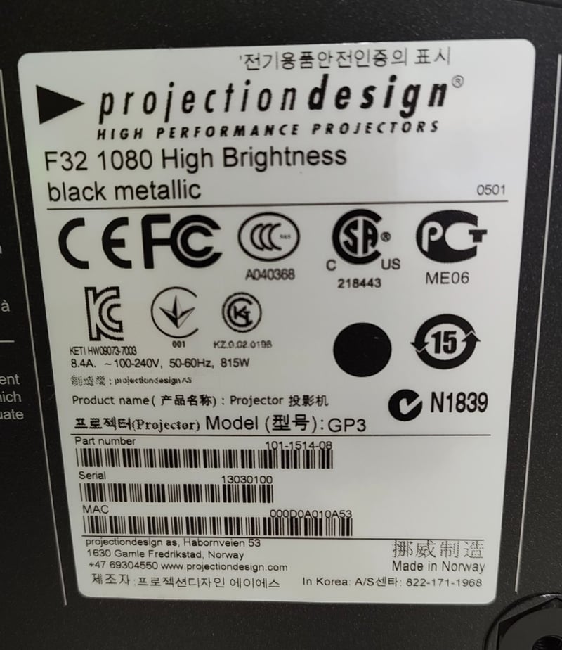 Projection Design F32 1080 High Brightness GP3 Projector (Black Metallic)