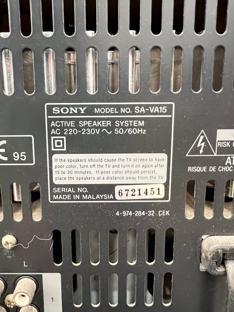 Speaker system, Sony, SA-VA15, serial; 6721451, Black Dimensions approx; H150 x D23 x 18 cm Quantity; 1