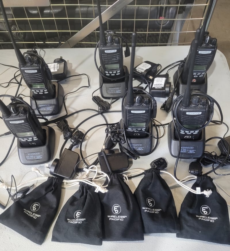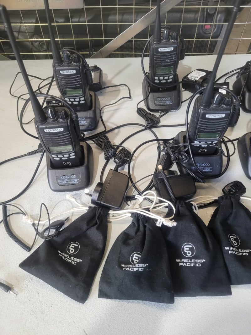 x6 Kenwood 2 Way Radio's With KSC-355 Chargers And Assorted Accessories. Note: Unknown Working ConditionInspection Recommended