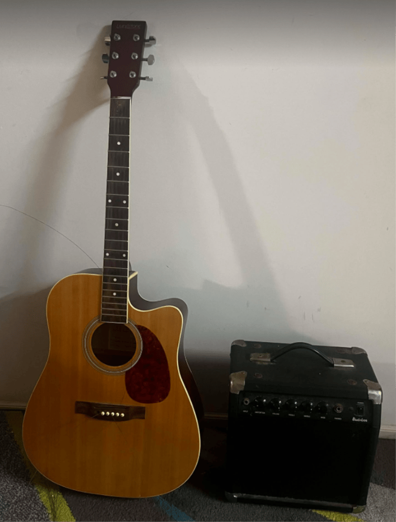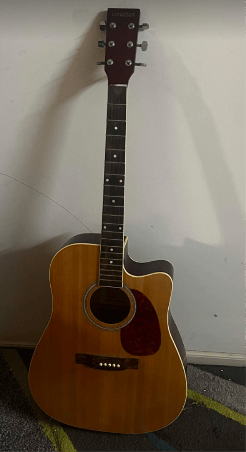 Livingstone Acoustic/ Electric guitar Model: FAG540CEQ/N - 6 String. (Strings need to be replaced) and a Yamaha HY-10G II Guitar Amplifierr.