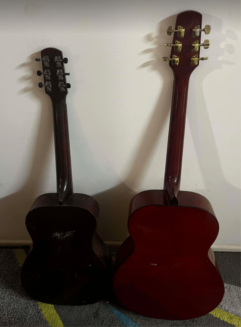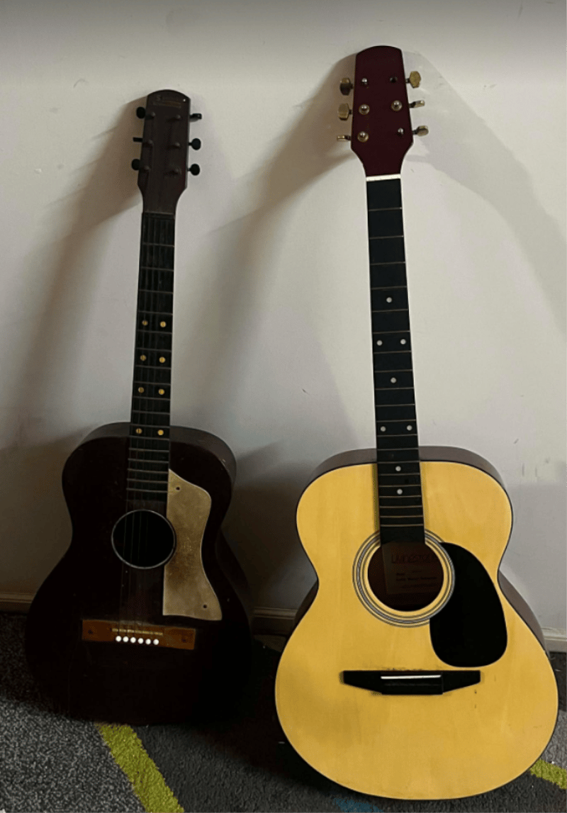 2 x Accoustic Guitars ( 1 x Livingstone Accoustic Guitar & 1 x Sampson Accoustic Guitar) - Marks present refer to images