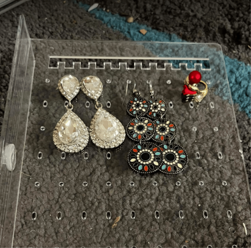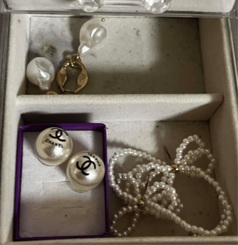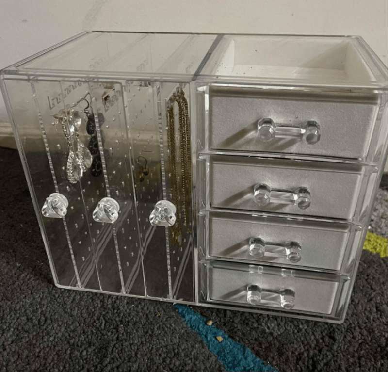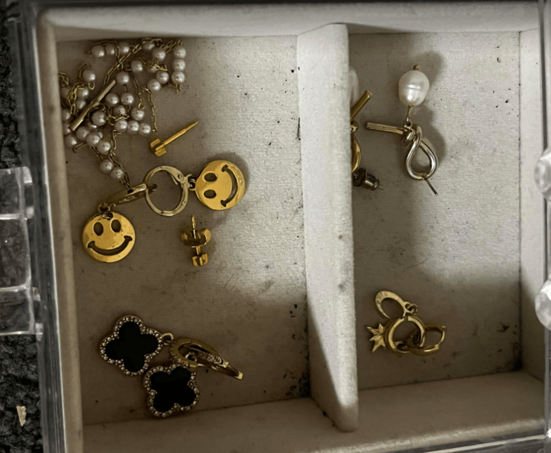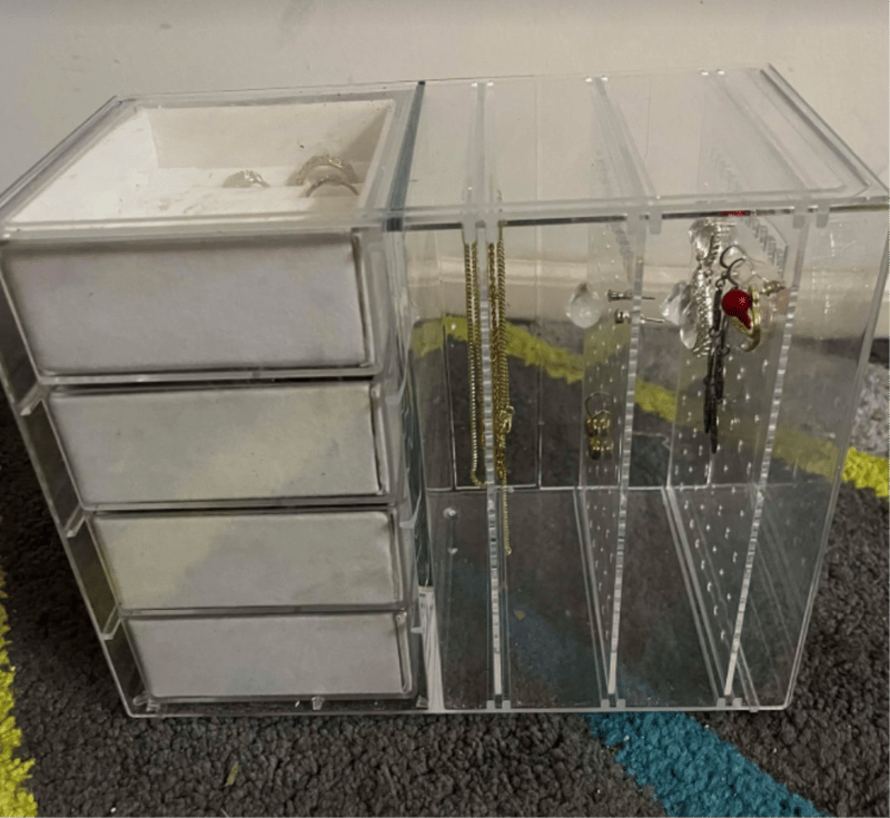 Jewellery Box with Costume Jewellery. Refer to images (18pairs of earrings, 3 rings & 3 necklaces.)
