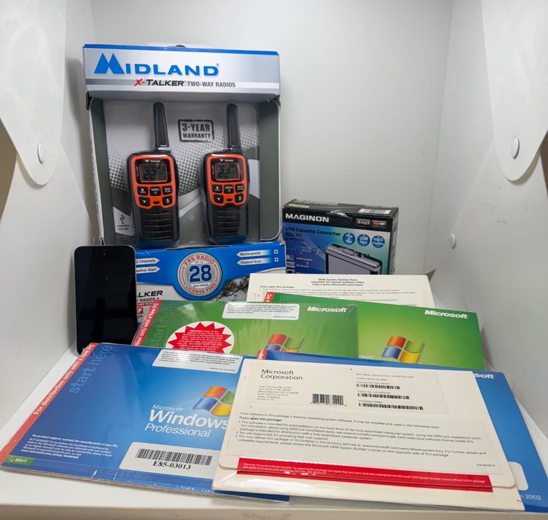 ASSORTMENT OF EQUIPMENT INCLUDING, MIDLAND X - TALKER TWO WAY RADIOS IPOD 4USB CASSETTE CONVERTER ASSORTMENT OF MICROSOFT WINDOWS SOFTWARENOTE: working condition unknown