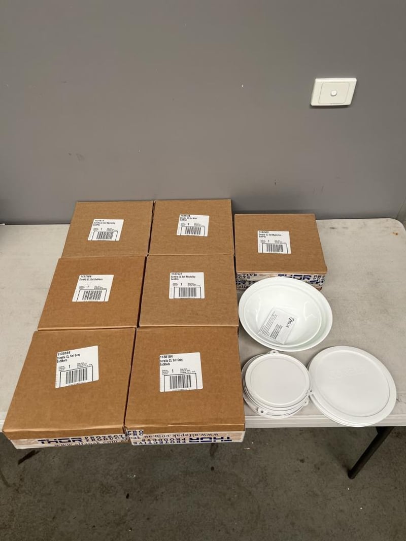 RRP $599 Corelle Dinnerware Set, Mystic Gray (78-Piece Set) - RETAIL RETURN UNUSED PRISTINE CONDITION