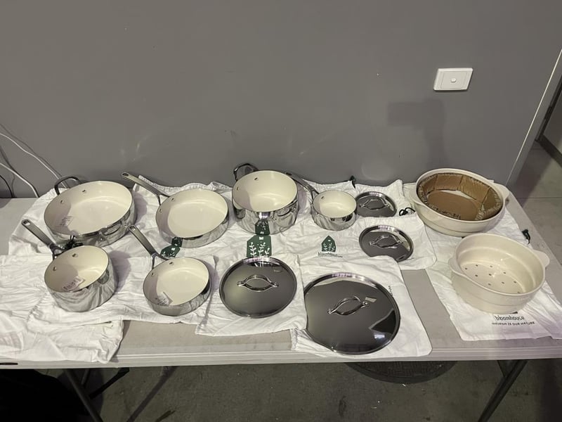 RRP $1699 Bloomhouse Oprah's Favorite Things - 12 Piece Triply Stainless Steel Pots and Pans Cookware Set Ceramic Steamer Inserts & 12 Protective Care Bags - RETAIL RETURN UNUSED PRISTINE CONDITION
