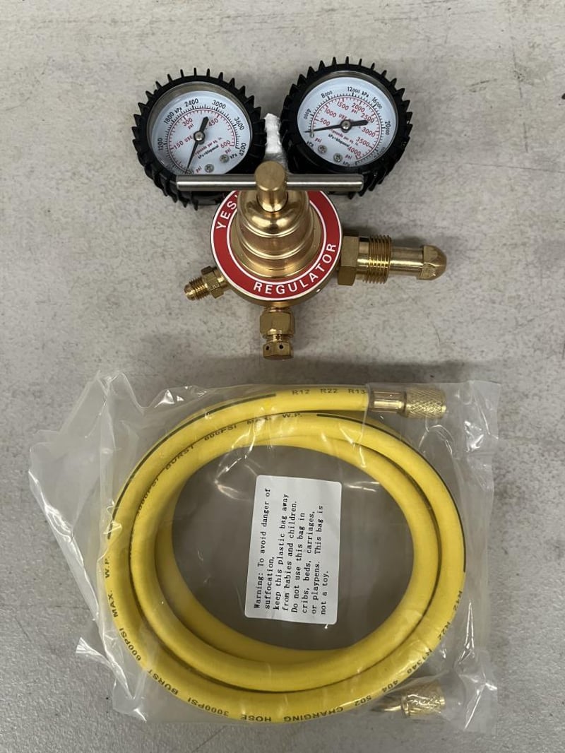 YESWELDER Nitrogen Regulator with Hose 0-600 PSI and 0-4000PSI Output Pressure CGA580 Inlet Connection and 1/4" Male Flare Fitting - RETAIL RETURN UNUSED PRISTINE CONDITION