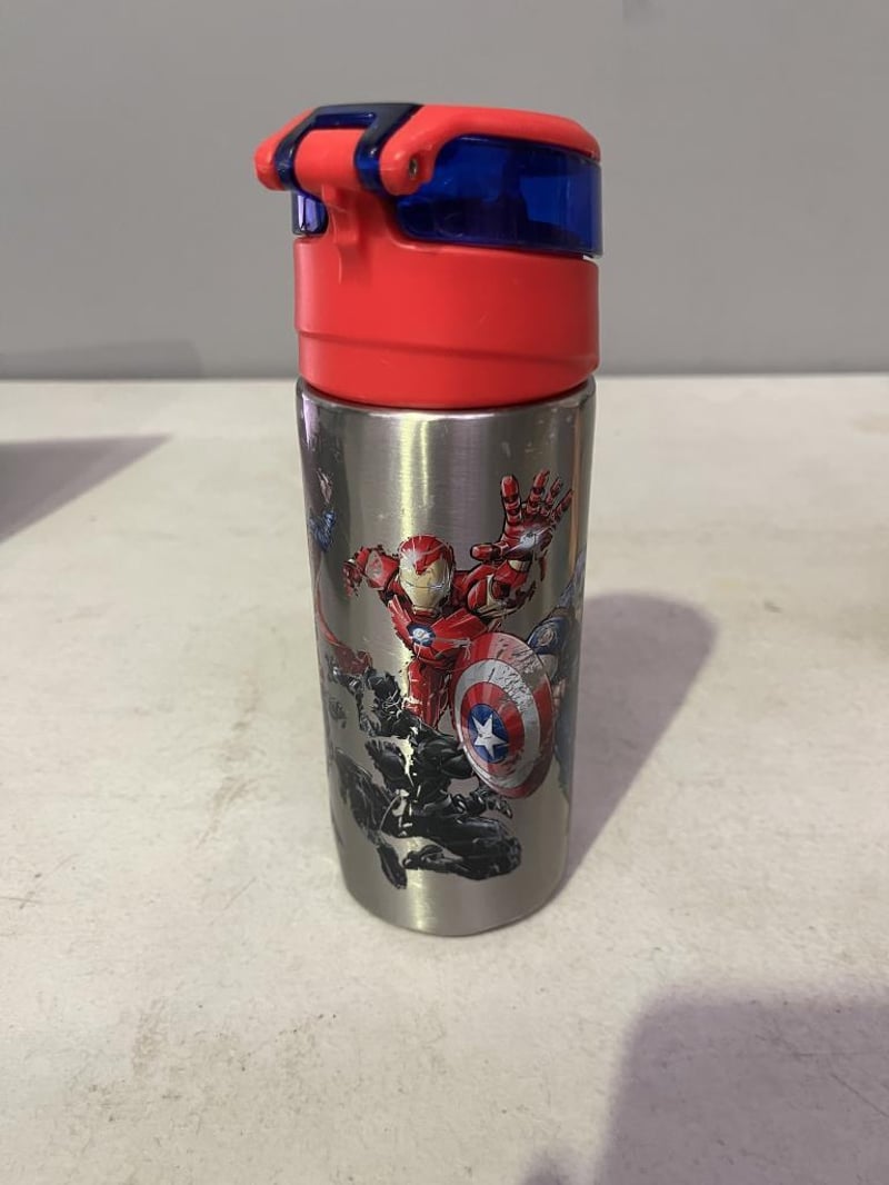 Zak Designs Marvel Comics Durable Single Wall Stainless Steel Water Bottle with Push-Button Flip Lid 19.5 oz - REFURBISHED WORKING VERY GOOD CONDITION (IMAGES FADED REFER TO PHOTO)