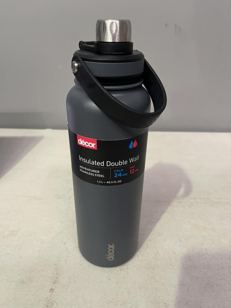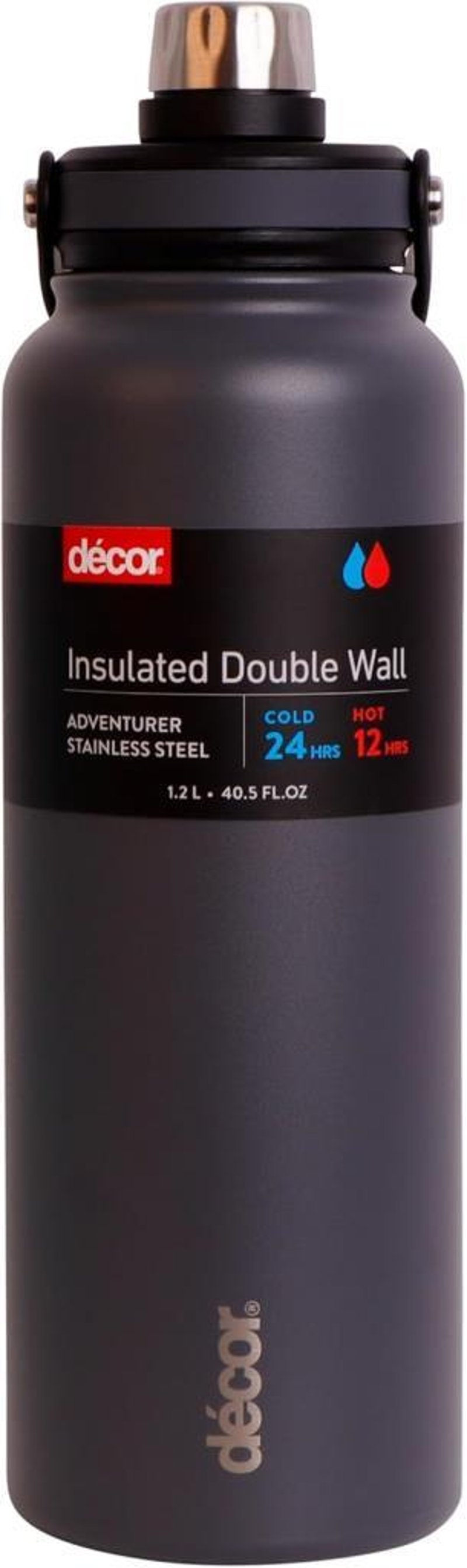 Décor Adventurer Insulated Stainless Steel Double Wall Bottle Assorted 1.2 Litre Capacity - Grey - RETAIL RETURN UNUSED AS NEW CONDITION