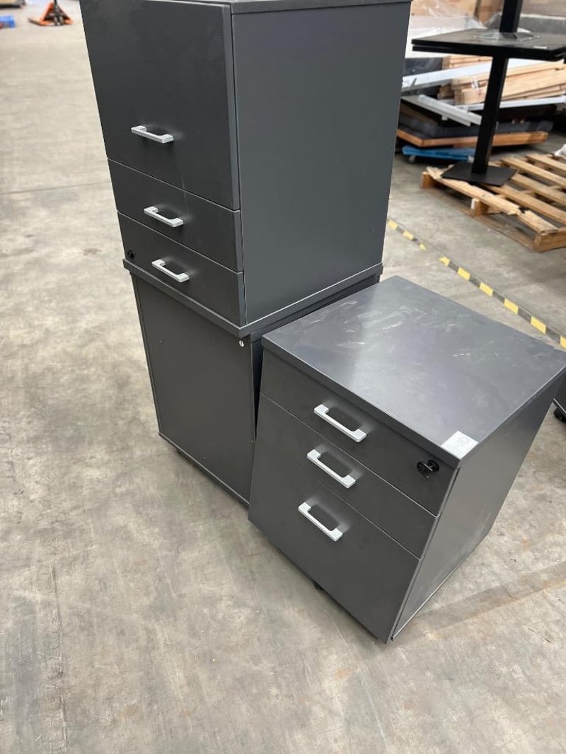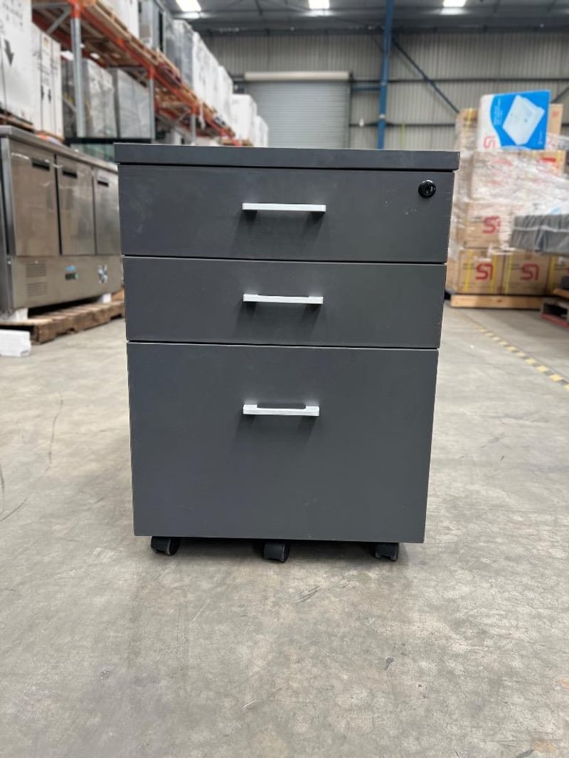 Drawers, brand/ model unknown, 3 drawers, dark grey colour, 1 wheel broken Dimensions approx;47x60x48cmQuantity; 3 sold as lot