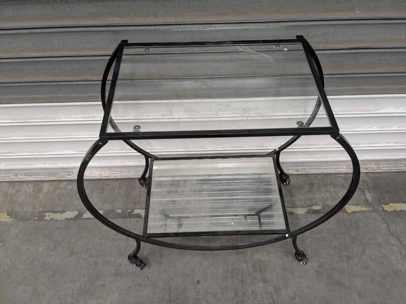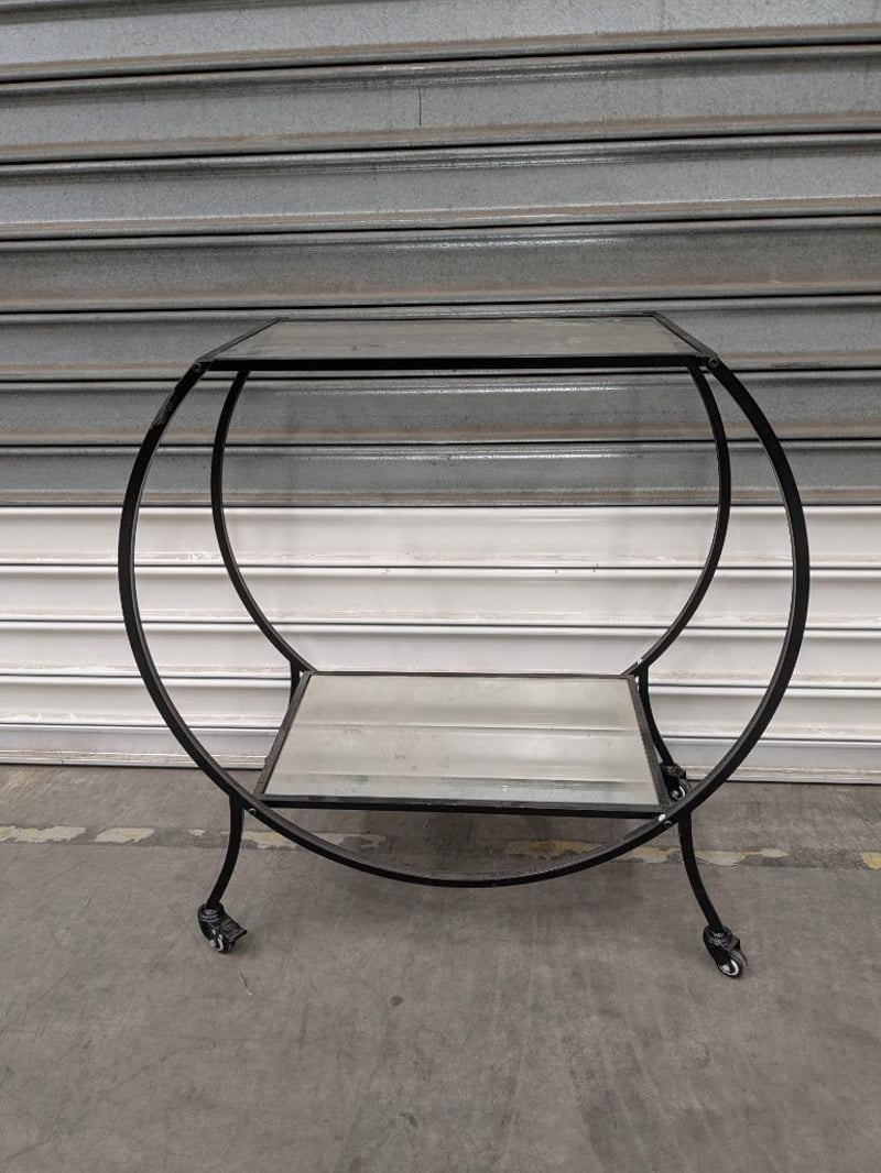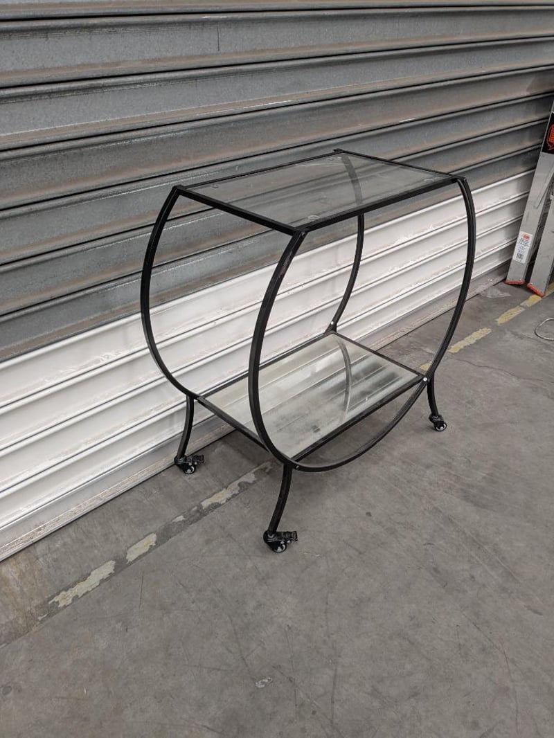 Bar cart, brand/model unknown, metal/glass type, colour black Dimensions approx; 81h x 80w x 41d cm