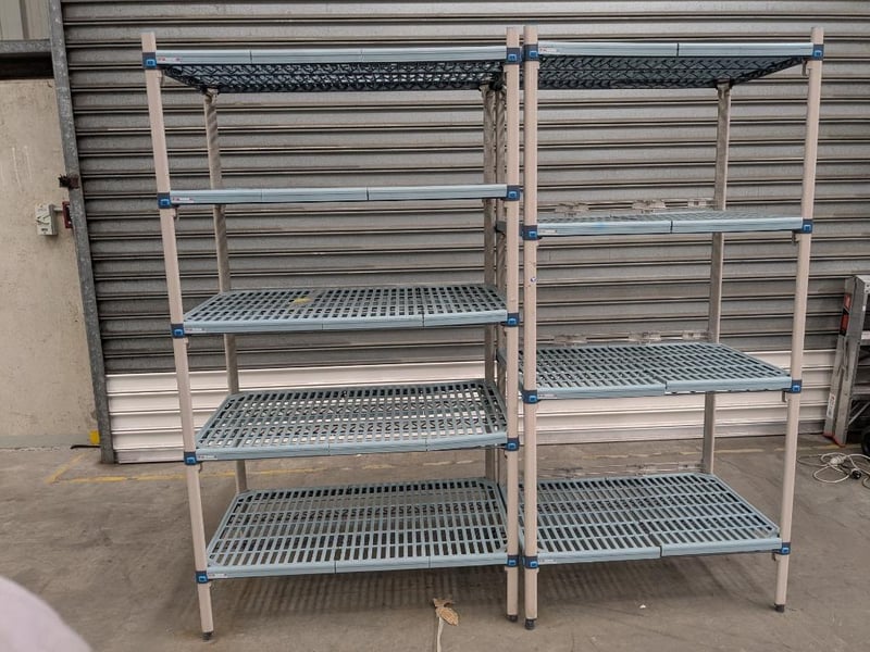 Shelves, Metro max, unknown model, blue/grey, some marks present, assorted sizes Quantity; 2 sold as Lot