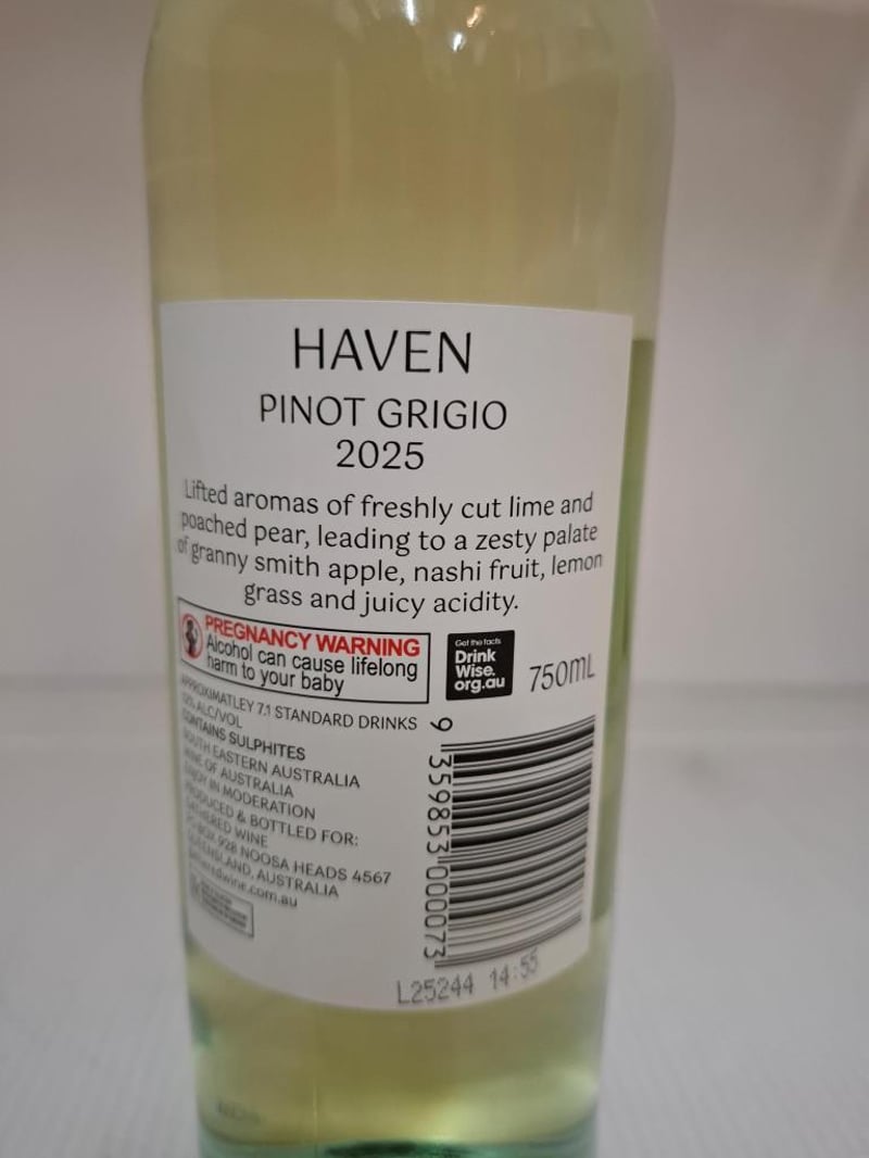 12 x Bottles Of Haven Pinot Grigio, 750ml, 12% Alc/vol