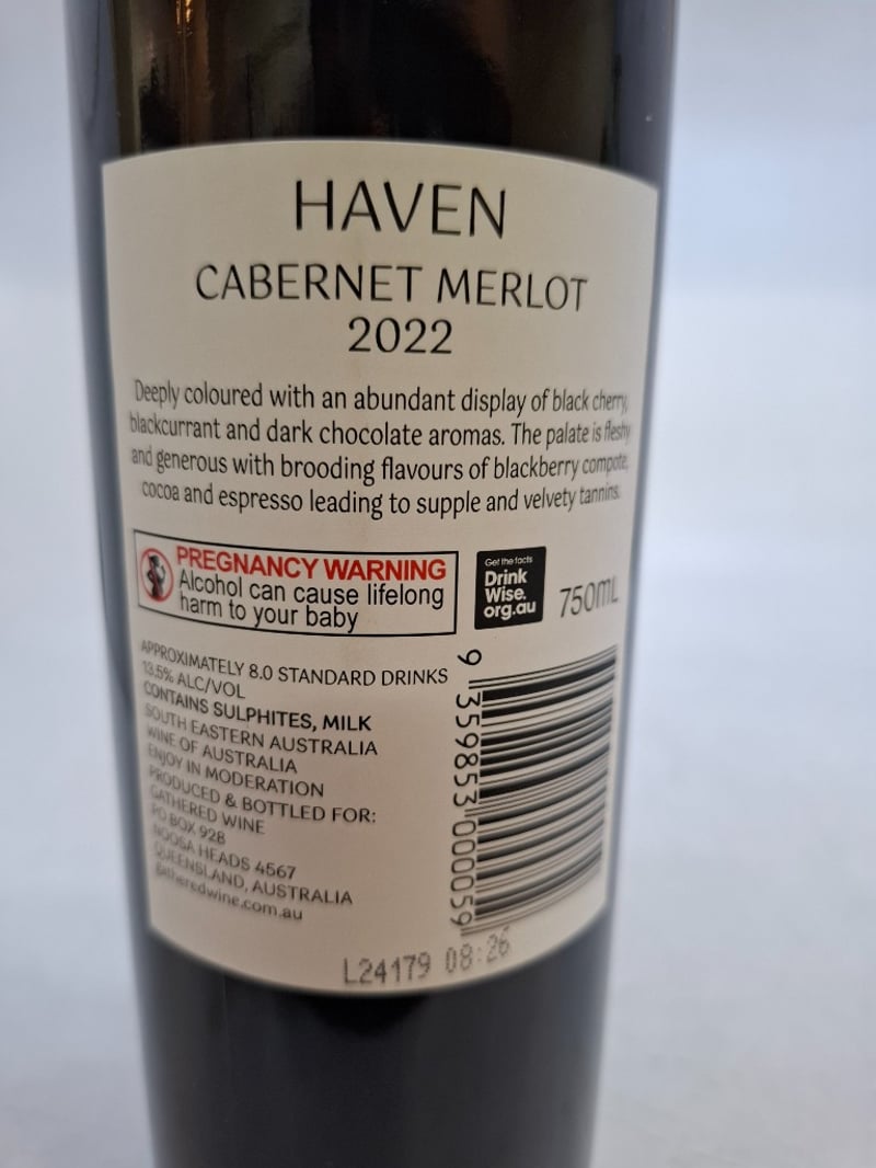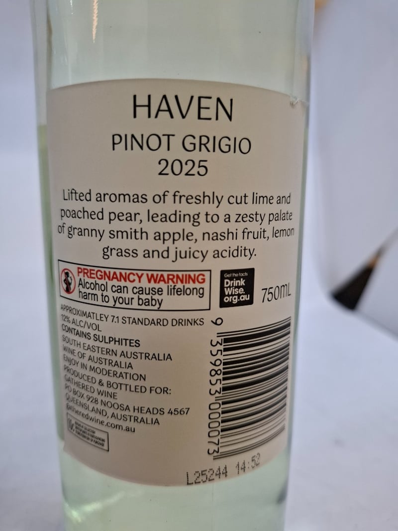 6 x Bottles Of Haven Pinot Grigio, 2025, 750ml, 12% Alc/vol6 x Bottles Of Haven Cabernet Merlot 2022, 750ml, 13.5% Alc/vol