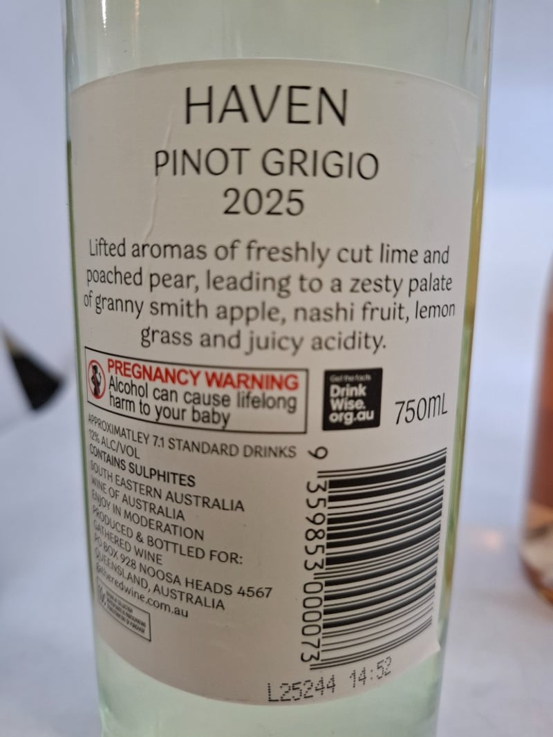 4 x Bottles Of Haven 2025, Pino Grigio, Australia, 750ml, 12% Alc/vol