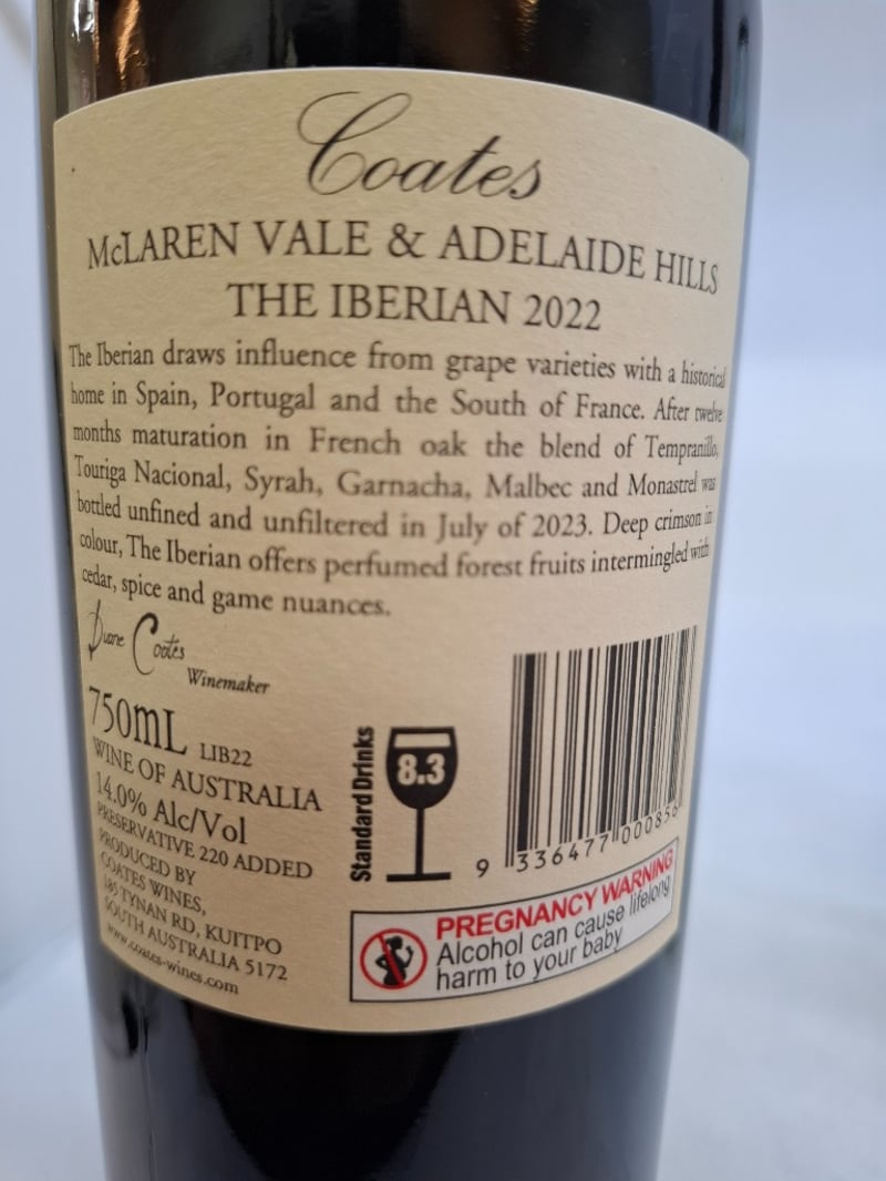 4 x Bottles Of Coates 2022, The Iberian, McLaren Vale & Adelaide Hills, Australia, 750ml, 14% Alc/vol
