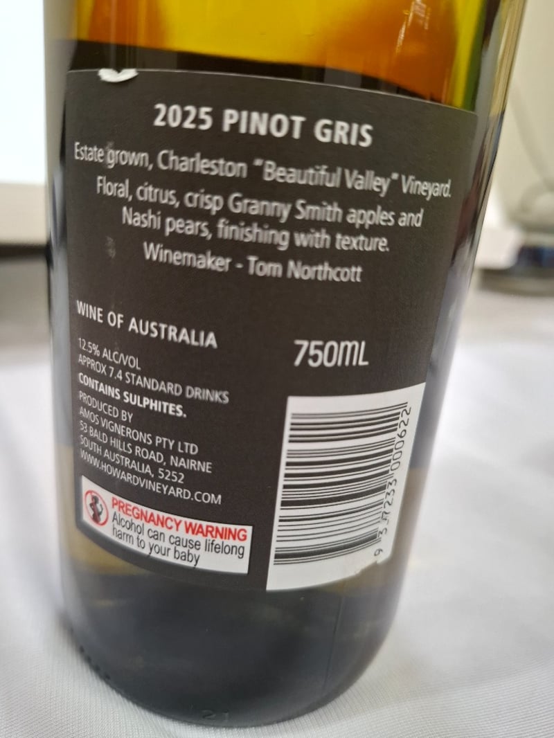 4 x Bottles Of Howard Vineyard 2025, Pinot gris, Adelaide Hills Australia, 750ml, 12.5% Alc/Vol