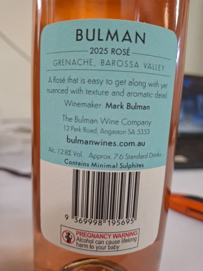 1x Bottles Of Bulman 2025, Rosé Grenache, Barossa Valley, 750ml, 12.8% Alc/vol