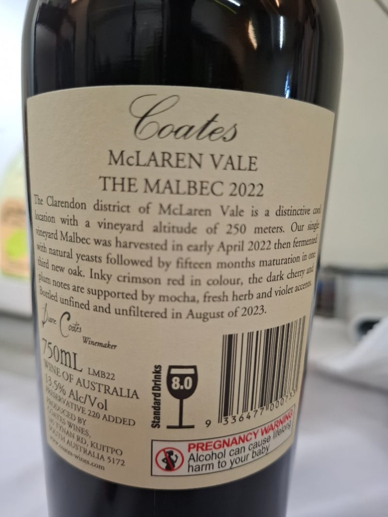 4 x Bottles Of Coates 2022, The Malbec, McLaren Vale Australia, 750ml, 13.5% Alc/Vol