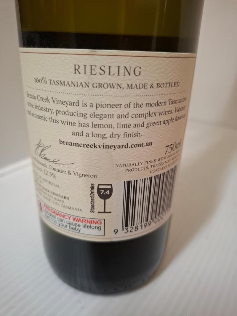 3 x Bottles Of Bream Creek 2024, Riesling Tasmania , 750ml, 12.5% Alc/vol