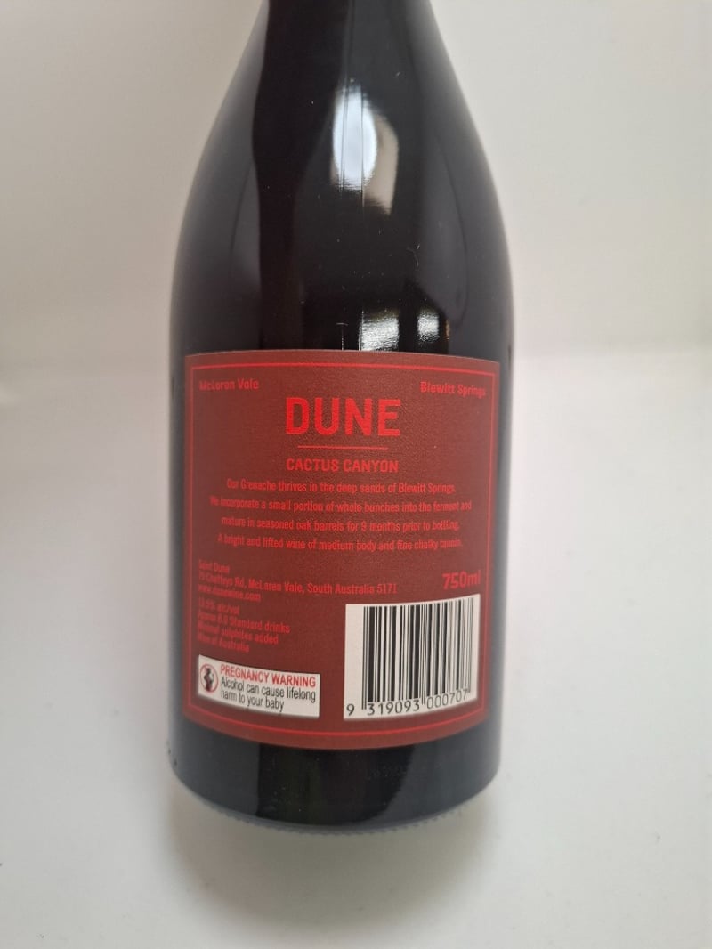 1 x Bottle Of Dune Cactus Canyon 2024 McLaren Vale, 750ml, 13.5% Alc/vol