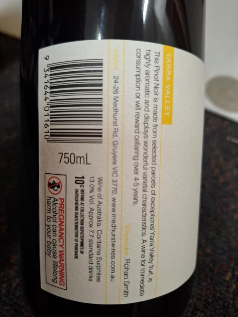 2 x Bottles Of Medhurst 2024, Pinot Noir, Yarra Valley Australia, 750ml, 13% Alc/Vol