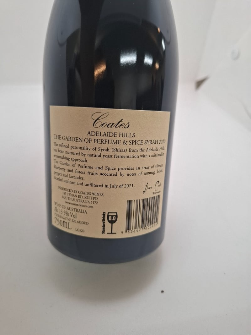 3 x Bottles Of Coates McLaren Vale The Mourvedre 2021, 750ml, 14% Alc/vol3 x Bottles Of Coates Adelaide Hills The Nebbiolo 2020, 750ml, 14% Alc/vol3 x Bottles Of Coates Adelaide Hills The Garden of Perfume and Spice Syrah 2020, 750ml, 13.5% Alc/vol1 x Bottle Of Rusden Vine Vigneron Barossa Valley School Days 2023 Shiraz, 750ml, 14.5% Alc/vol1 x Bottle Of Flametree Margaret River Cabernet Sauvignon 2022, 750ml, 14% Alc/vol1 x Bottle Of Teusner Gentleman Vintage 2022 Cabernet Sauvignon Barossa, 750ml, 14.5% Alc/vol
