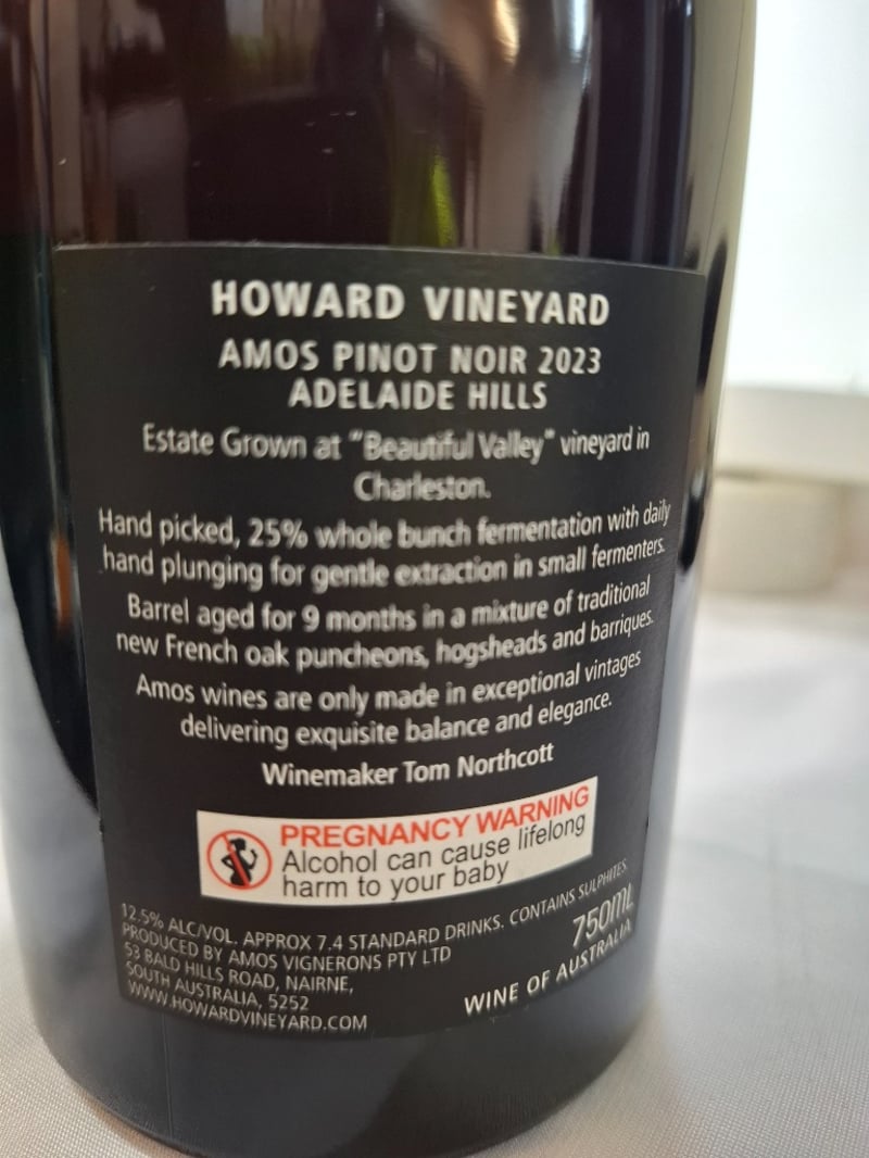 1 x Bottle Of Amos Howard Vineyard 2023, Pinot Noir, Adelaide Hills, 750ml, 12.5% Alc/Vol