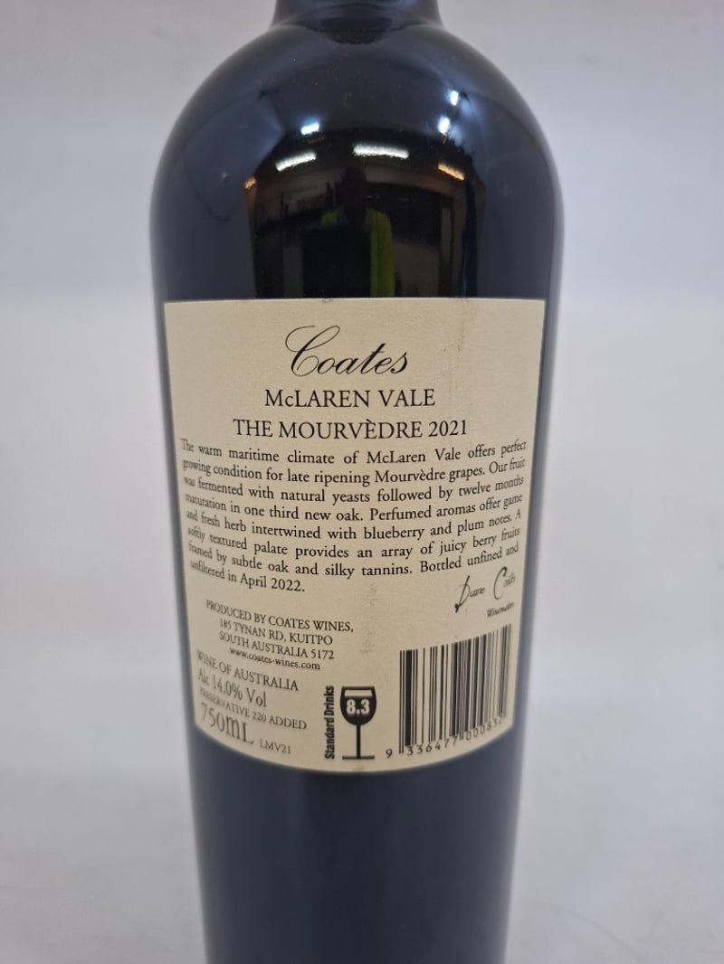 4 x Bottles Of Coates McLaren Vale The Mourvèdre 2021, 750ml, 14% Alc/vol