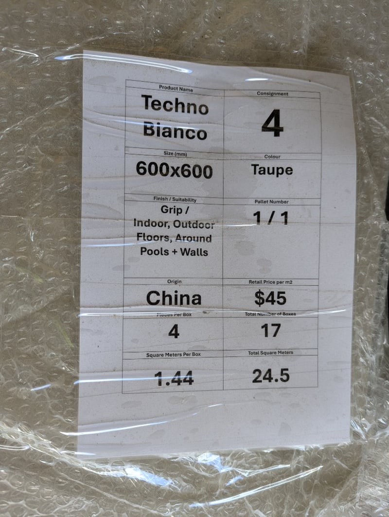 Grip / Indoor, Outdoor Floors, Around Pools and Wall Tiles, Techno Bianco, Taupe Colour, Approximate Quantity of 68 Tiles (24.5 Square Meters)
