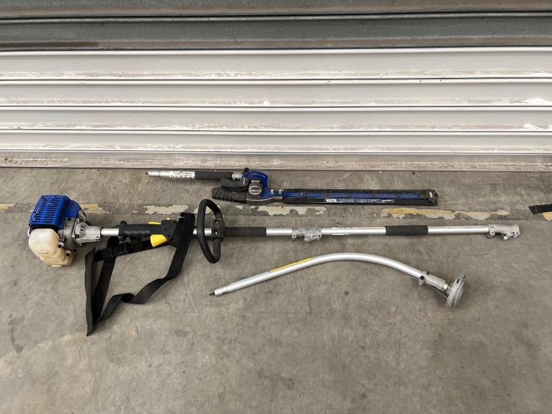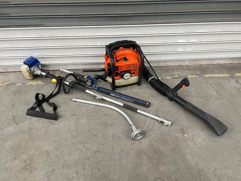 Landscaping equipment, brands include; Vicks, Rauholtz, assorted models, includes; backpack leaf blower, hedge trimmer Sold as lot